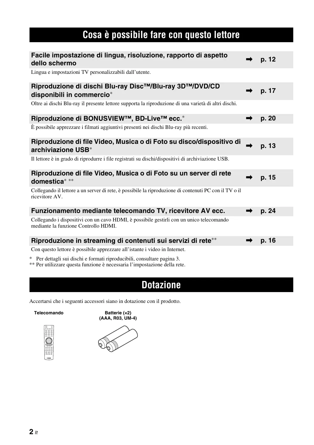 Scarica le istruzioni per il tuo Lettore blu-ray in formato PDF gratuitamente! Trova il tuo manuale BD-S473 - YAMAHA e riprendi in mano il tuo dispositivo elettronico. In questa pagina sono pubblicati tutti i documenti necessari per l'utilizzo del tuo dispositivo. BD-S473 del marchio YAMAHA.