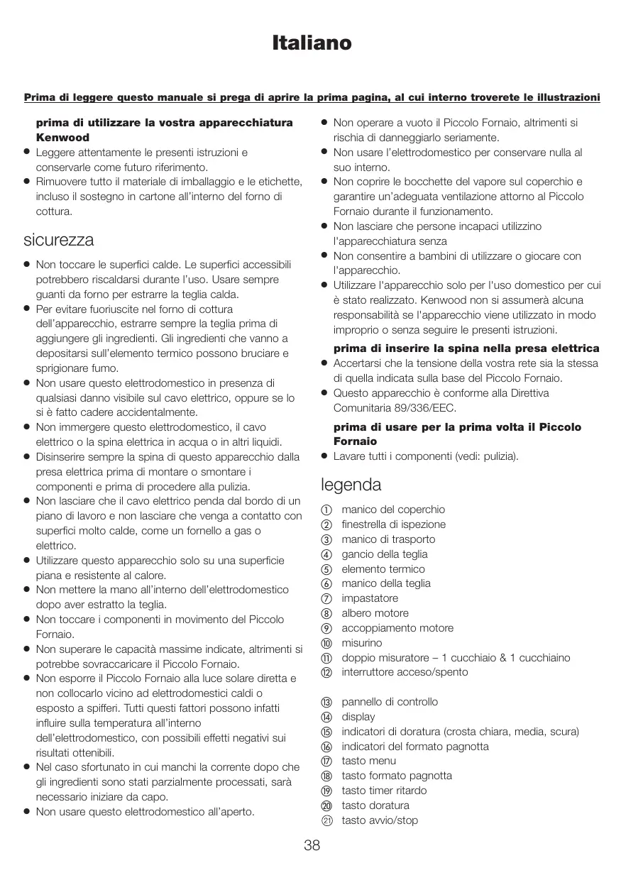 BM 210 - Macchina per il pane KENWOOD - Manuale utente e istruzioni gratuiti