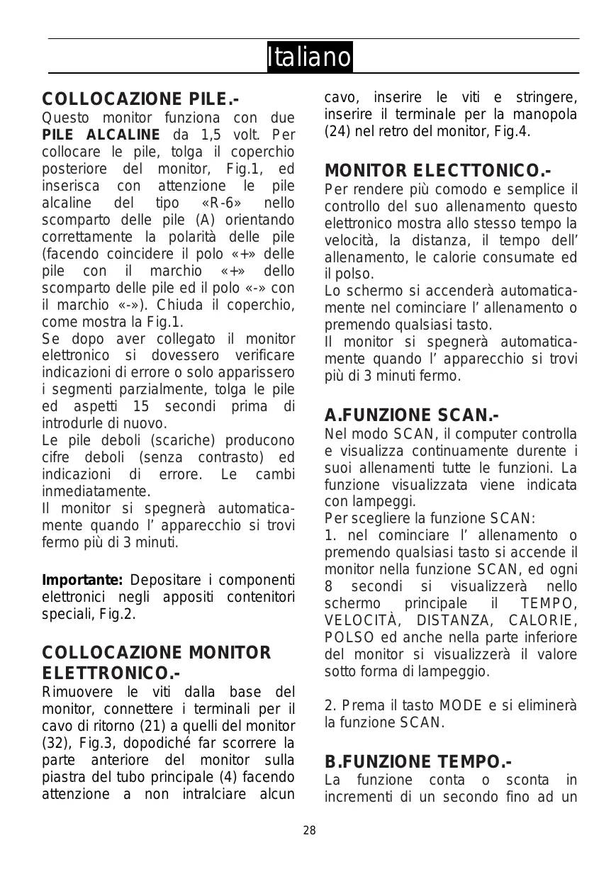 Nel modo SCAN, il computer controlling e visualizza continuamente durante i loroAllenamenti tutte le funzioni. La funzione visualizzataiene indicative con lampeggi.