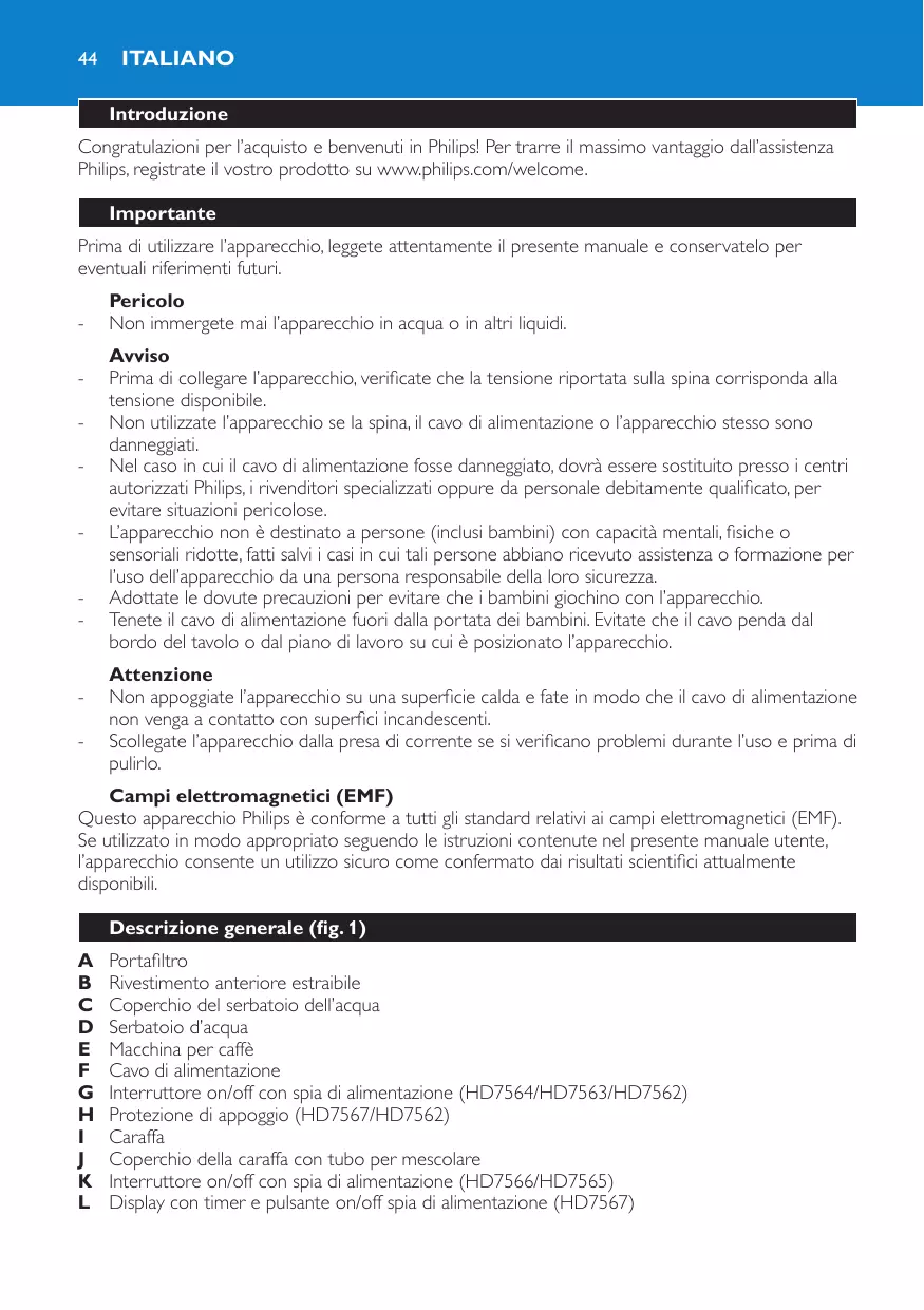 HD 7546/20 - Macchina da caffè PHILIPS - Manuale utente e istruzioni gratuiti