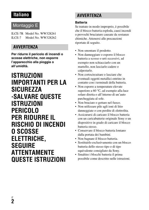 Scarica le istruzioni per il tuo Appareil photo hybride in formato PDF gratuitamente! Trova il tuo manuale A7 - SONY e riprendi in mano il tuo dispositivo elettronico. In questa pagina sono pubblicati tutti i documenti necessari per l'utilizzo del tuo dispositivo. A7 del marchio SONY.