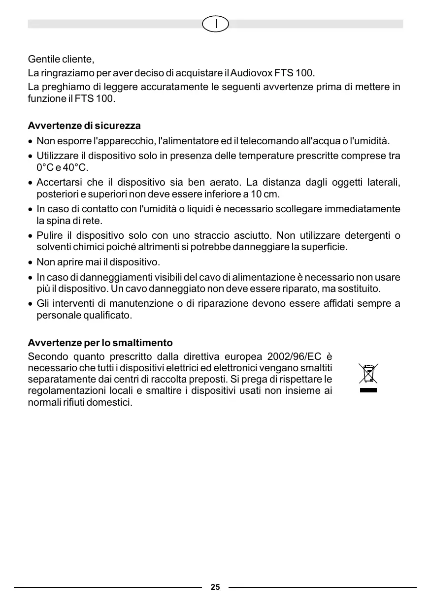 MANUALE UTENTE FTS 100 AUDIOVOX
