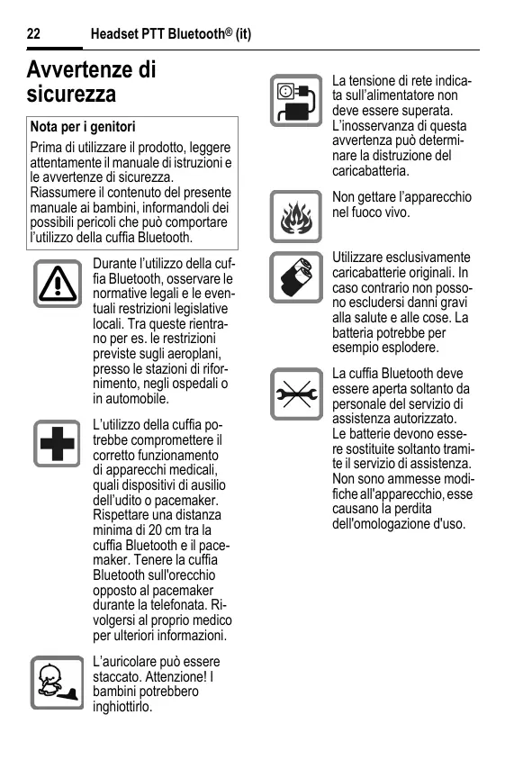 Headset PTT Bluetooth® (it) Avvertenze di oth® sicurezza