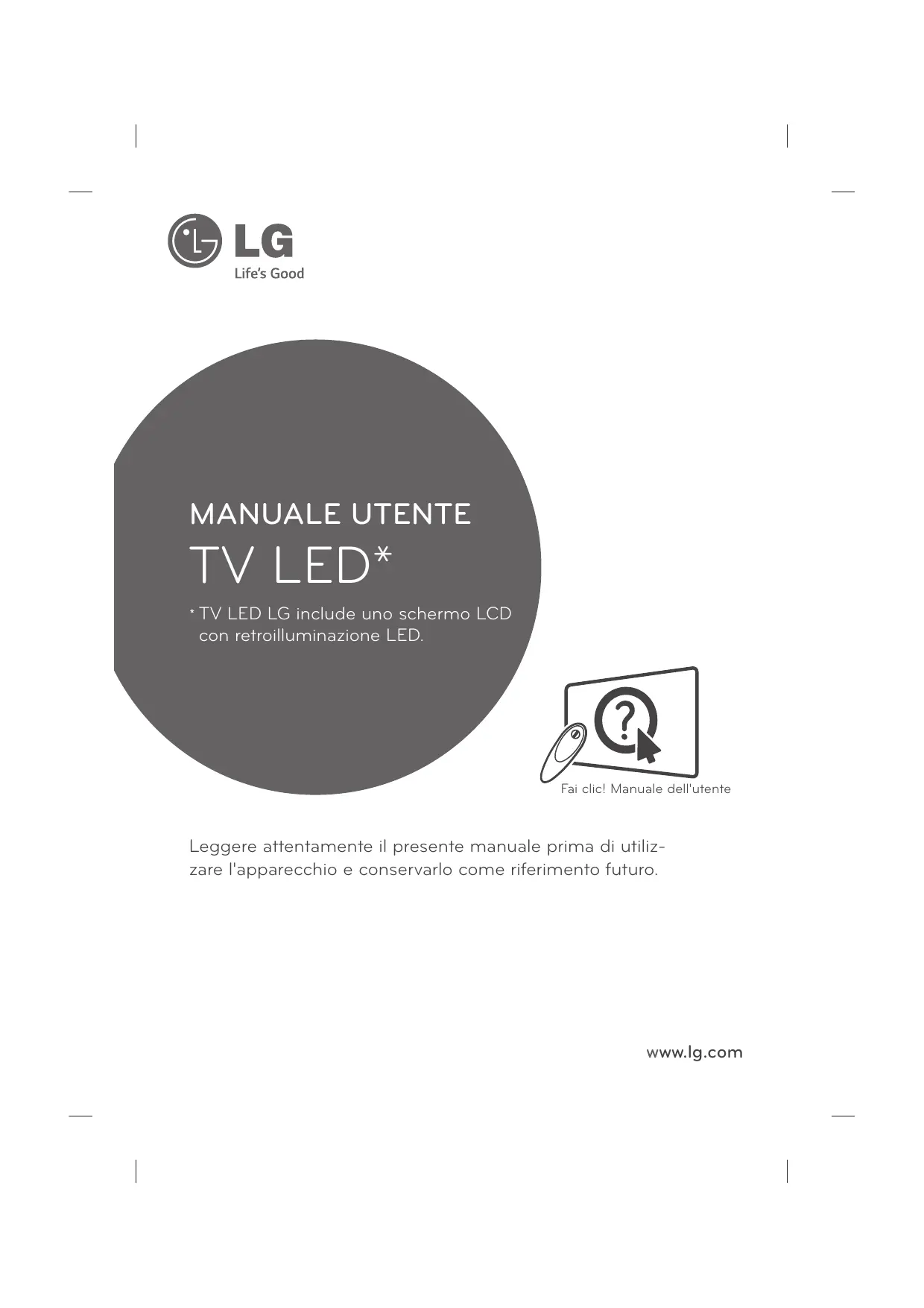 TV LED LG include uno schermo LCD con retroilluminazione LED. Fai clic! Manuale dell'utente Leggere attentamente il presente manuale prima di utilizzare l'apparecchio e conservarlo come riferimento futuro. www.lg.com