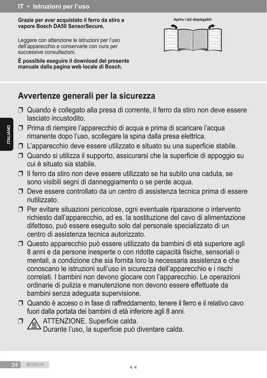 Grazie per aver acquistato il ferro da stiro a Aprire i lati dispiegabili vapore Bosch DA50 SensorSecure.