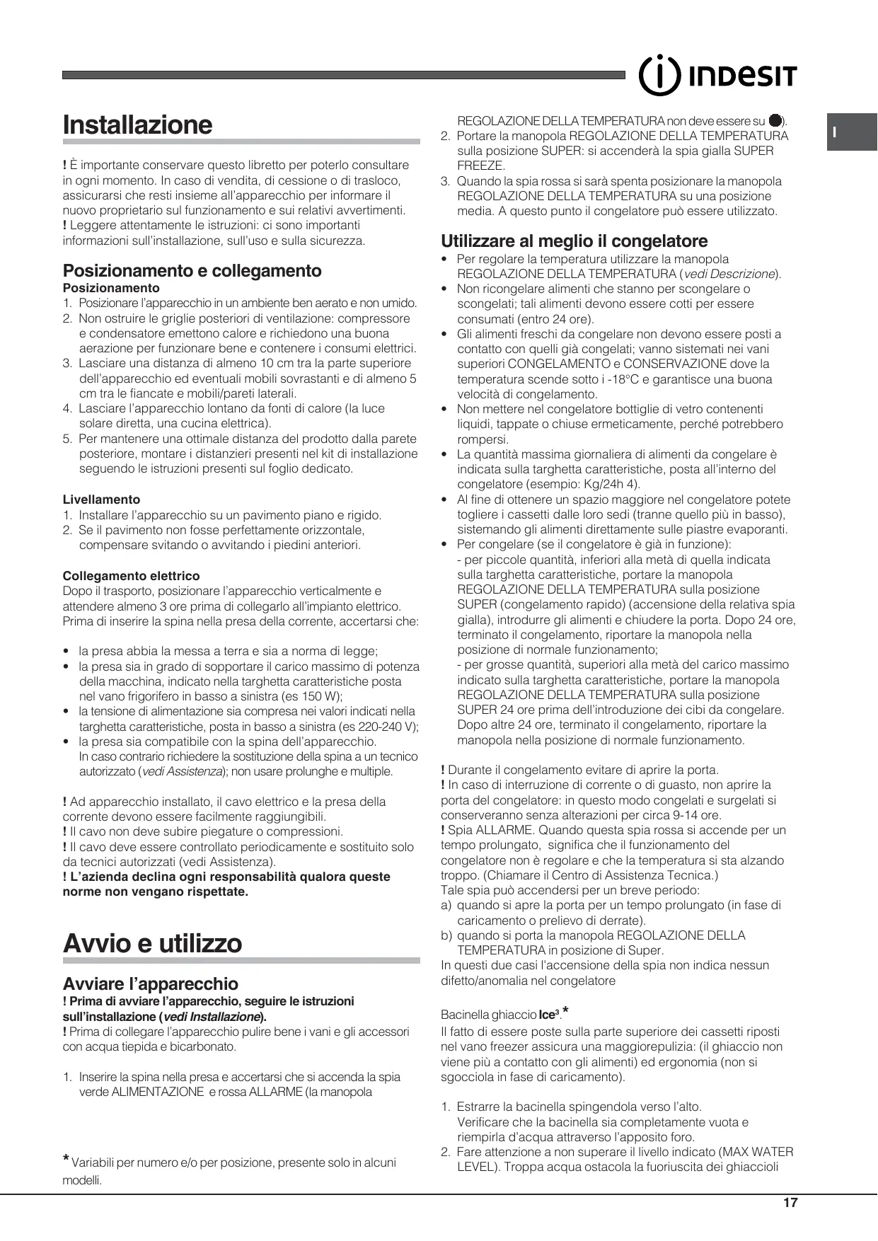 Scarica le istruzioni per il tuo Frigorifero in formato PDF gratuitamente! Trova il tuo manuale UIAA12FI - INDESIT e riprendi in mano il tuo dispositivo elettronico. In questa pagina sono pubblicati tutti i documenti necessari per l'utilizzo del tuo dispositivo. UIAA12FI del marchio INDESIT.