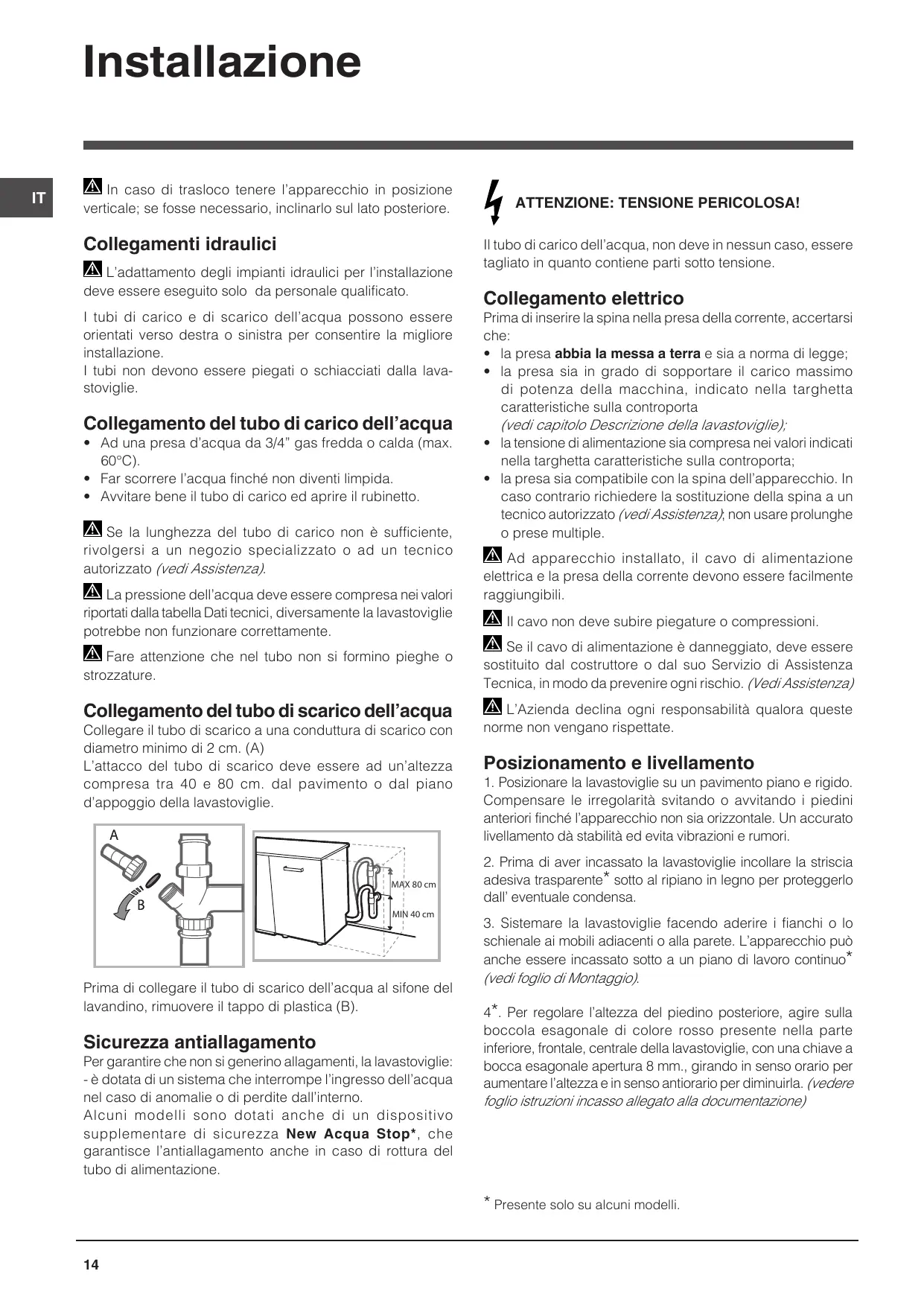 Attention à ce que les tuyaux d’arrivée et d’évacuation ne soient pas pliés ou écrasés par le lave-vaisselle.