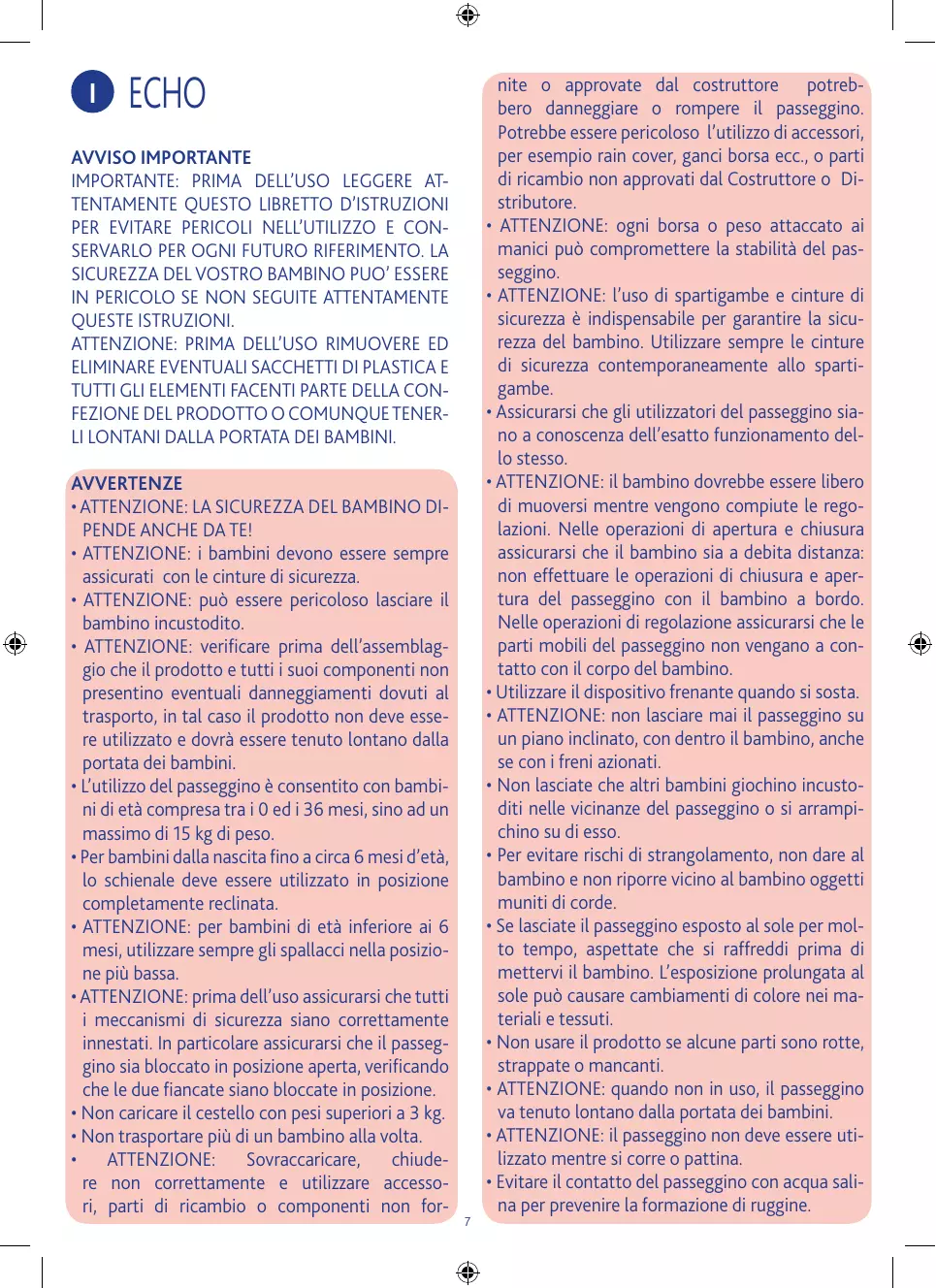 ECHO - Passeggini CHICCO - Manuale utente e istruzioni gratuiti