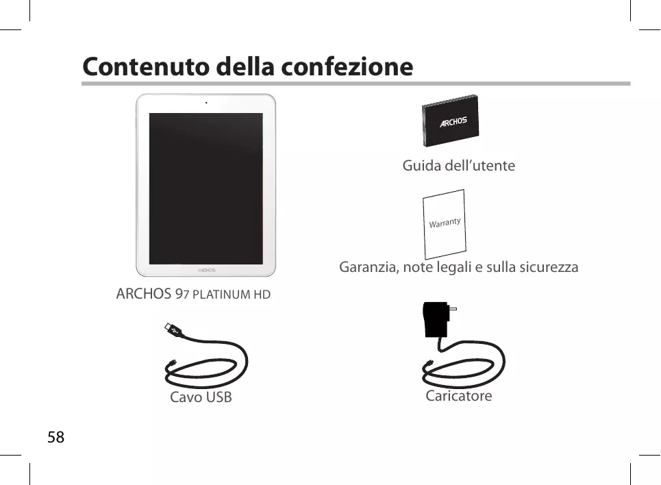 Warran Garanzia, note legali e sulla sicurezza ARCHOS 97 platinum HD Cavo USB