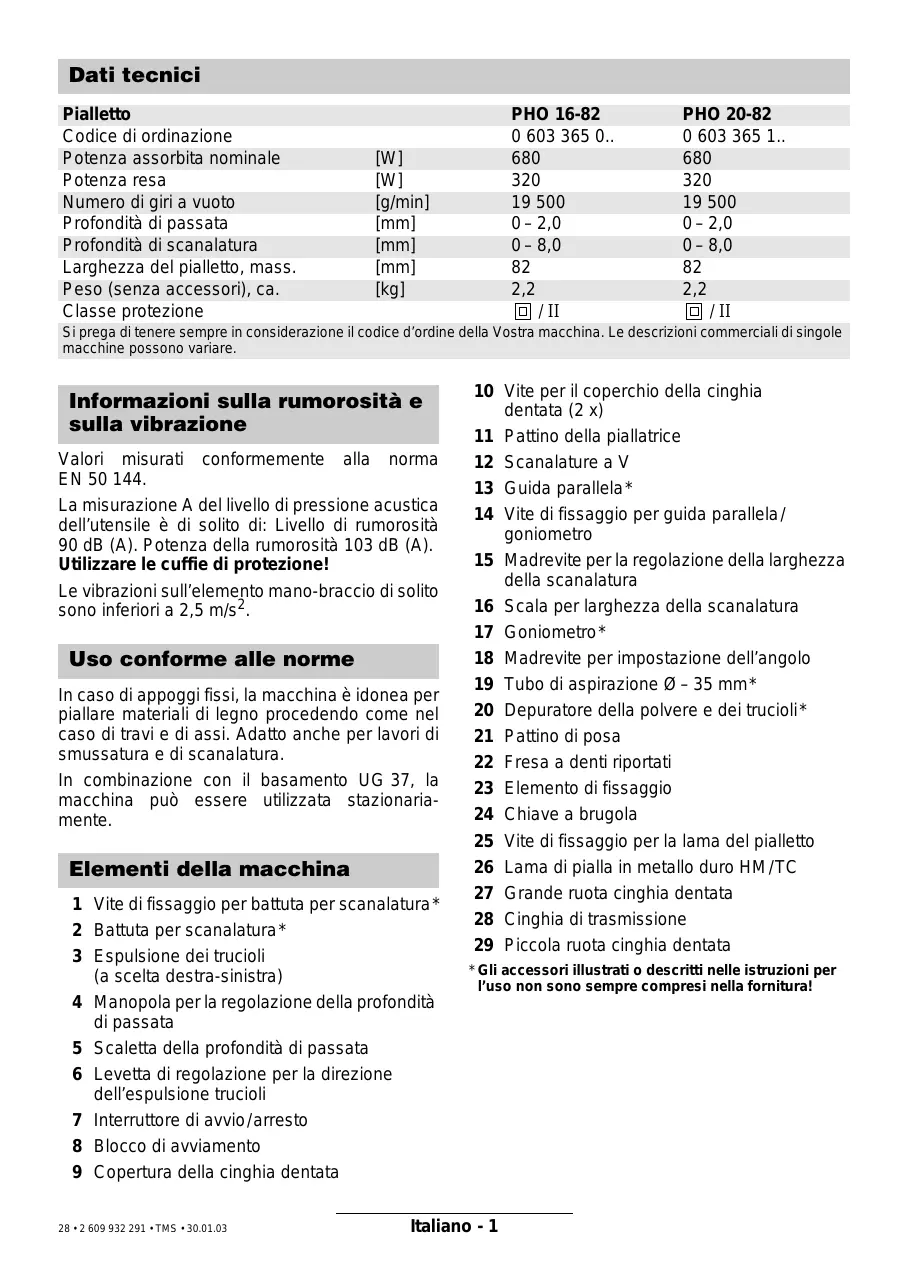 Scarica le istruzioni per il tuo Pialla in formato PDF gratuitamente! Trova il tuo manuale PHO20-82 - BOSCH e riprendi in mano il tuo dispositivo elettronico. In questa pagina sono pubblicati tutti i documenti necessari per l'utilizzo del tuo dispositivo. PHO20-82 del marchio BOSCH.
