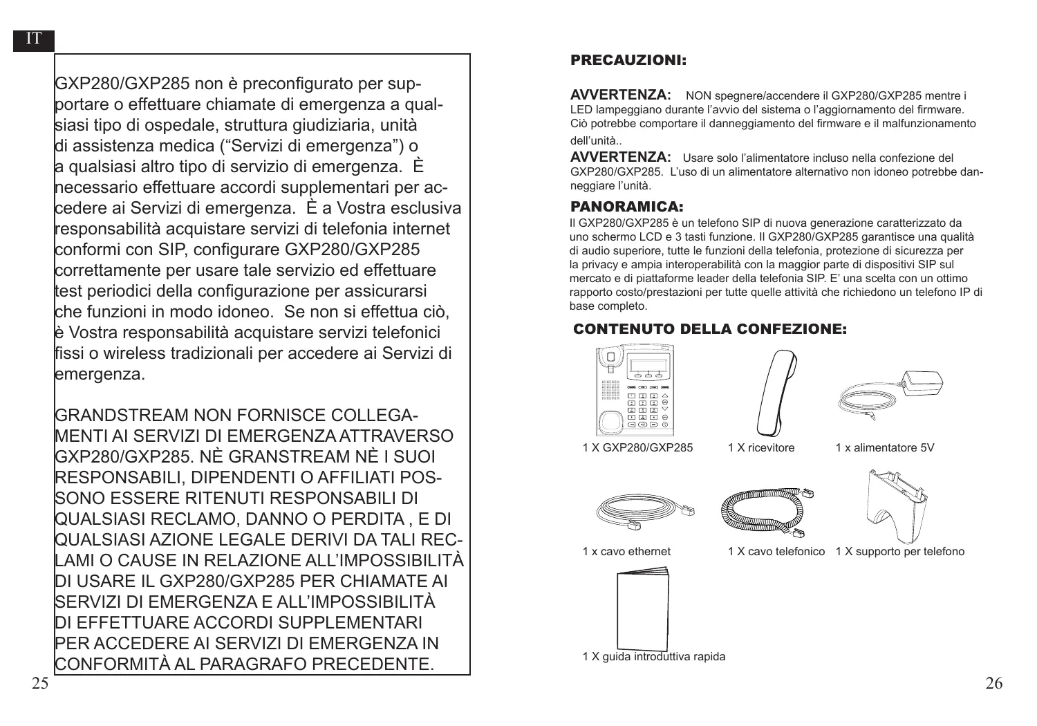 GRANDSTREAM NE FOURNIT PAS DE CONNEXIONS AUX SERVICES D’URGENCE VIA LE GXP280/GXP285. NI GRANDSTREAM NI SES DIRIGEANTS, SES EMPLOYÉS OU SES FILIALES NE PEUVENT ETRE TENUS RESPONSABLES DE TOUTE RÉCLAMATION, DOMMAGE OU PERTE ET VOUS RENONCEZ À TOUTE RÉCLAMATION OU CAUSE D’ACTION RESULTANT DE OU EN RELATION AVEC VOTRE INCAPACITE D’UTILISER LE GXP280/GXP285 POUR CONTACTER LES SERVICES D’URGENCE, ET VOTRE ECHEC A METTRE EN PLACE DES ARRANGEMENTS SUPPLEMENTAIRES POUR ACCEDER AUX SERVICES D’URGENCE CONFORMEMENT AU PARAGRAPHE PRECEDENT.