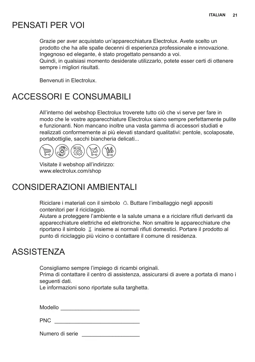 ACCESSOIRES ET CONSOMMABLES Dans la boutique en ligne d’Electrolux, vous trouverez tout ce qu’il vous faut pour que vos appareils Electrolux soient toujours impeccables et fonctionnent parfaitement, sans oublier une vaste gamme d’accessoires conçus et fabriqués selon les critères de qualité les plus élevés qui soient, des ustensiles de cuisine spécialisés aux range-couverts, des porte-bouteilles aux sacs à linge délicats...