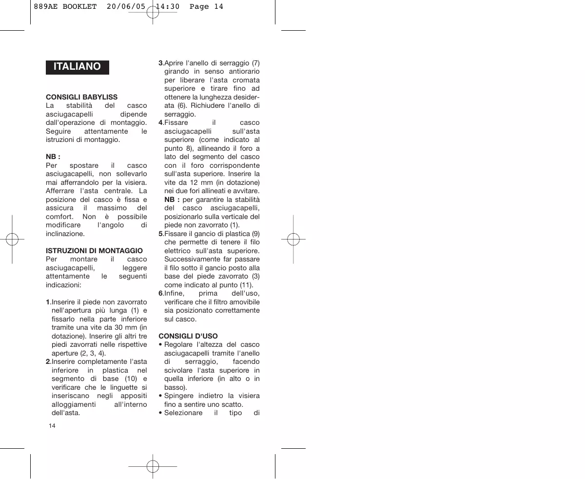 889AE - Apparecchi per capelli BABYLISS - Manuale utente e istruzioni gratuiti
