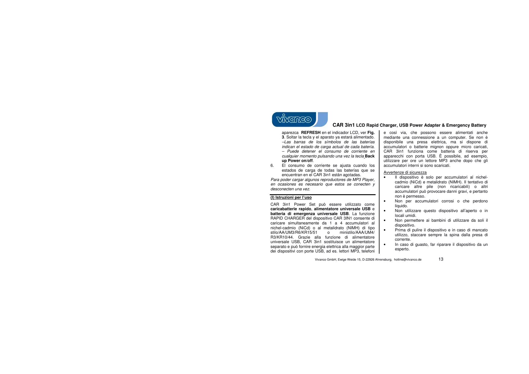 Vivanco GmbH, Ewige Weide 15, D-22926 Ahrensburg, hotline@vivanco.de