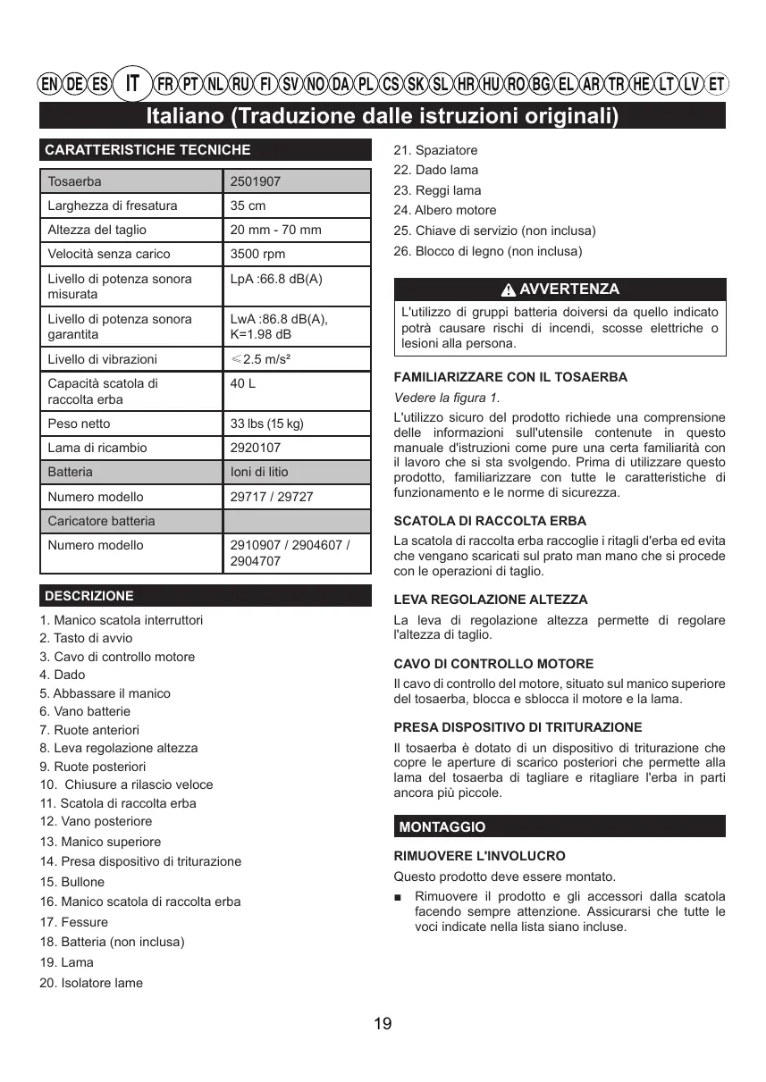 MANUALE UTENTE G40LM35 - G40LM35K2 - G40LM41 - G40LM45K4 - GD40LM45 - GD40LM46SP GREENWORKS