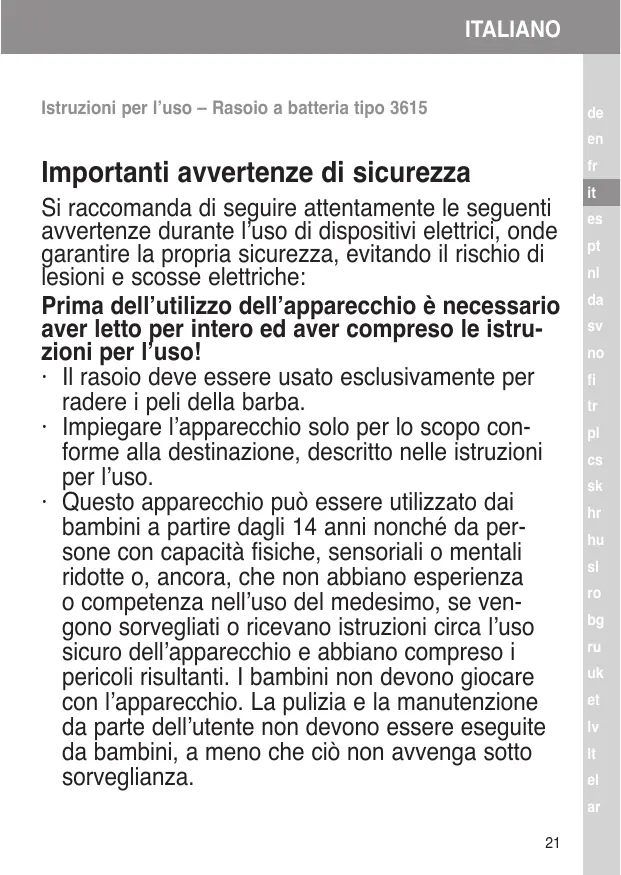 MANUALE UTENTE MOBILE SHAVER MOSER