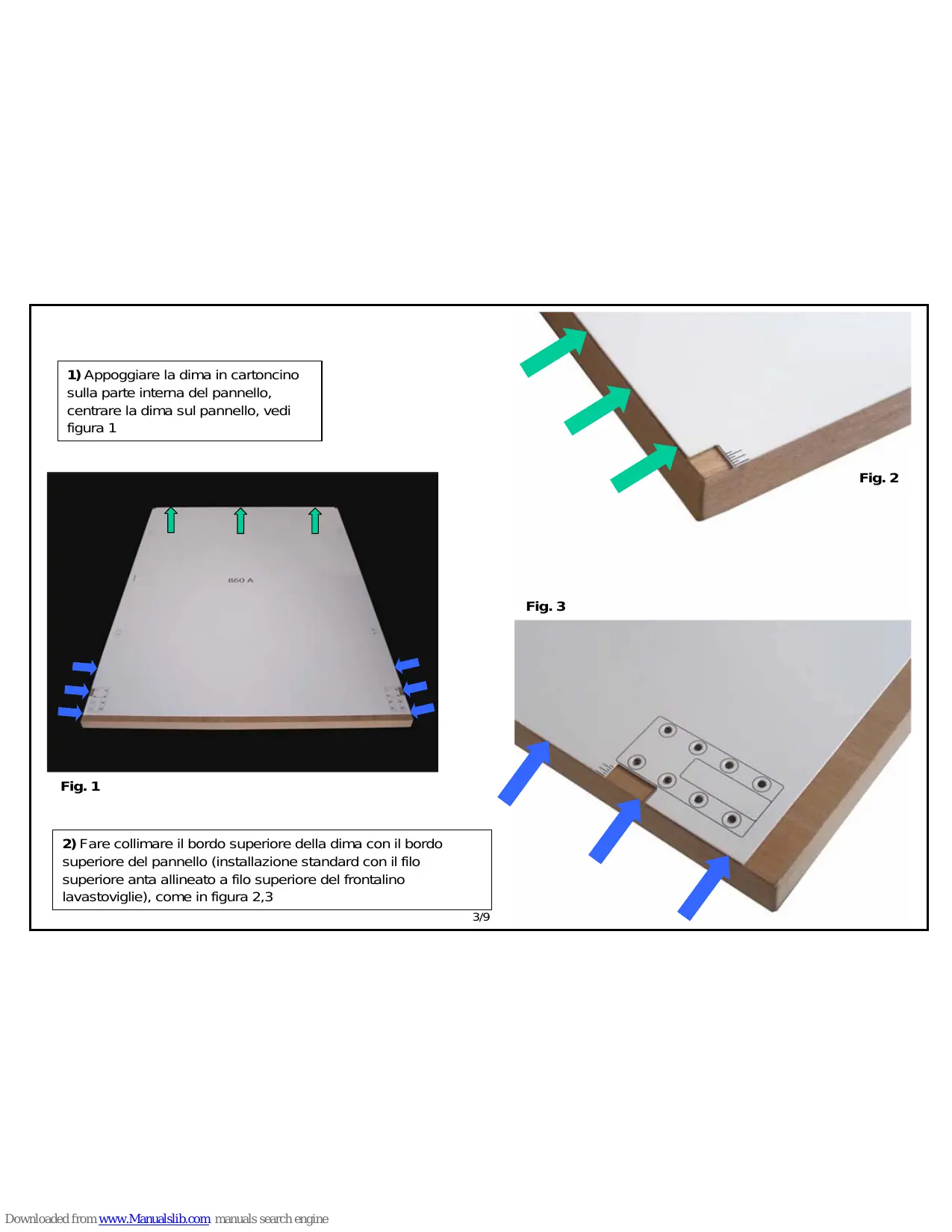 sulla parte interna del pannello, centrare la dima sul pannello, vedi figura 1 Fig. 2 Fig. 3 Fig. 1