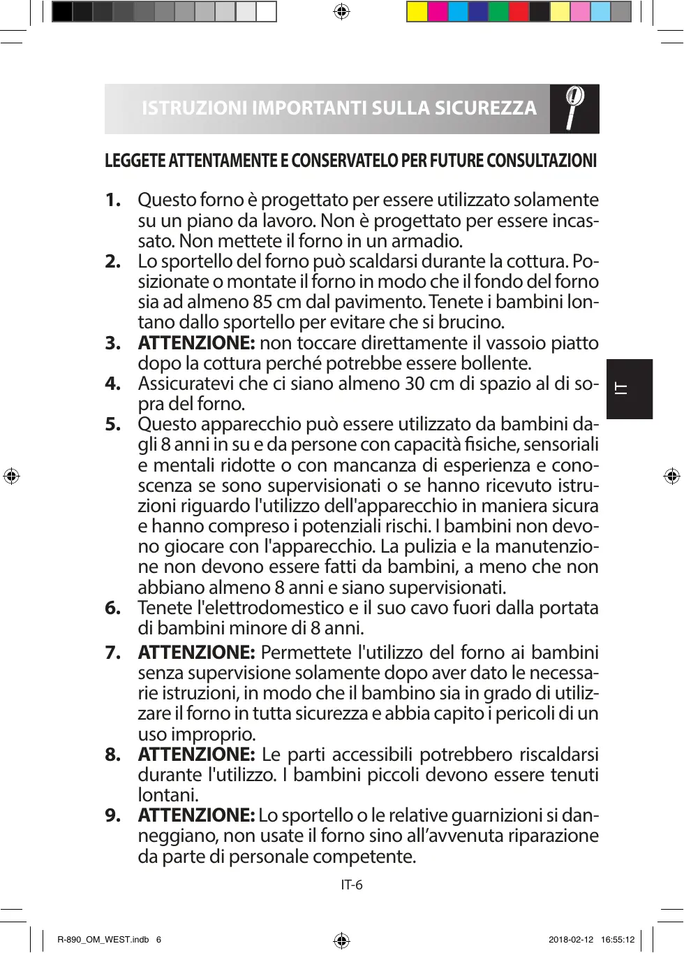 IMPORTANT ISTRUZIONI SULLA SICUREZZA 6-13