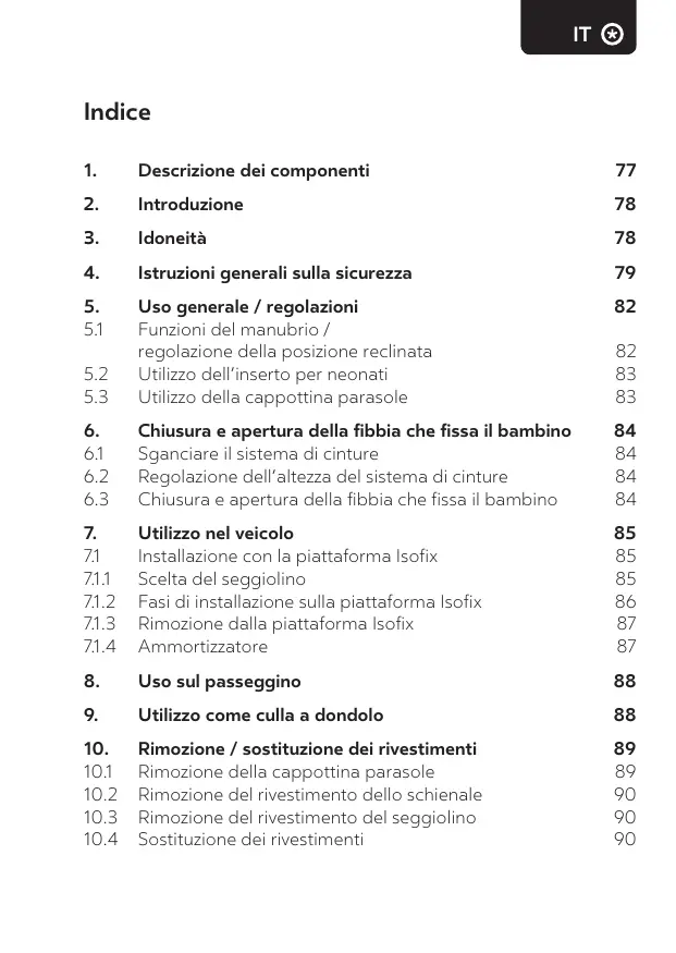66 66 Sélection du siège Étapes d’installation sur la base Isofix Retrait de la base Isofix Matériaux absorbeurs de chocs