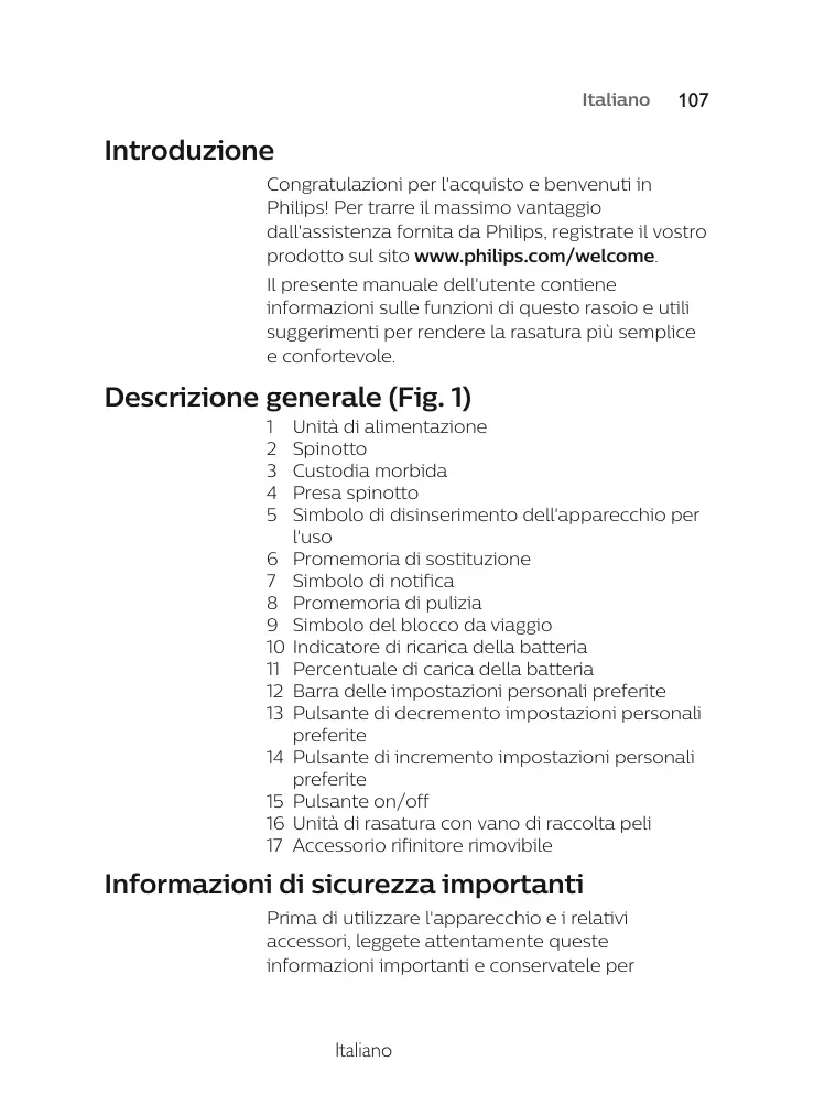 Compruebe siempre la afeitadora y todos los accesorios antes de usarlos. No utilice la afeitadora ni ningún accesorio si tienen desperfectos, ya que podrían producirse lesiones. Sustituya las piezas dañadas por repuestos originales. Este símbolo indica que la afeitadora se puede utilizar en la bañera o en la ducha. - Utilice esta afeitadora para uso doméstico tal y como se describe en este manual. - Por motivos de higiene, la afeitadora debería ser usada por una sola persona. - Es más fácil recortar cuando el vello y la piel están secos. Nota: Esta afeitadora es resistente al agua. Se puede utilizar en la bañera o en la ducha y se puede limpiar bajo el agua del grifo. Por motivos de seguridad, la afeitadora solo puede utilizarse sin cable.