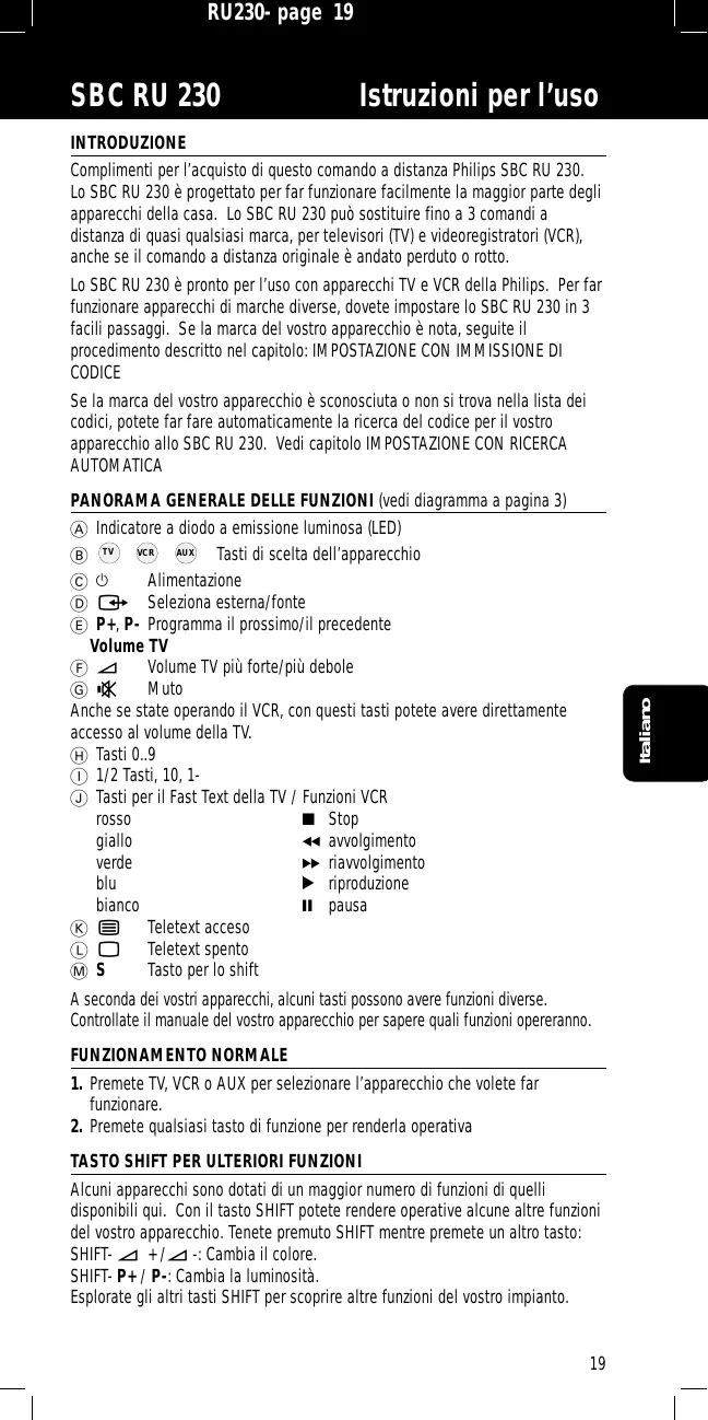 Trova gratuitamente il manuale del dispositivo SBC RU 252/00 UNIVERSAL REMOTE CONTROL in formato PDF.