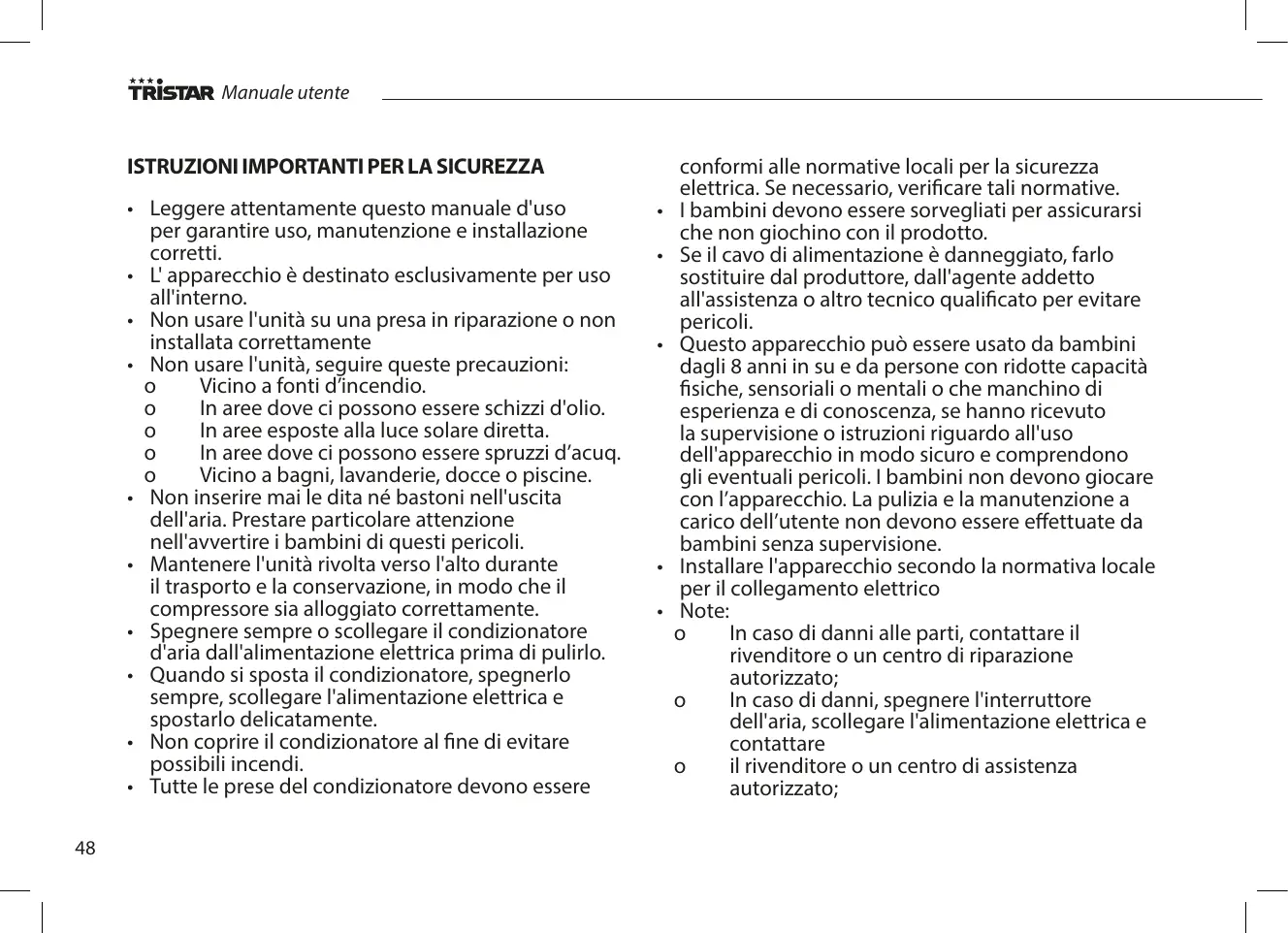MANUALE UTENTE AC5529 TRISTAR