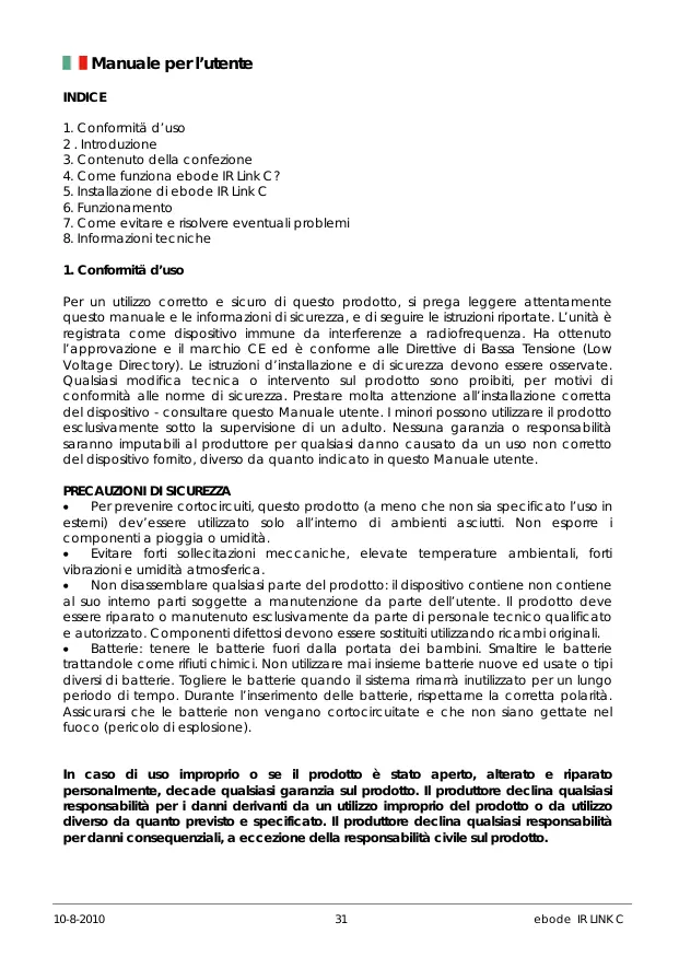 IR LINK C - Telecomando IR EBODE - Manuale utente e istruzioni gratuiti
