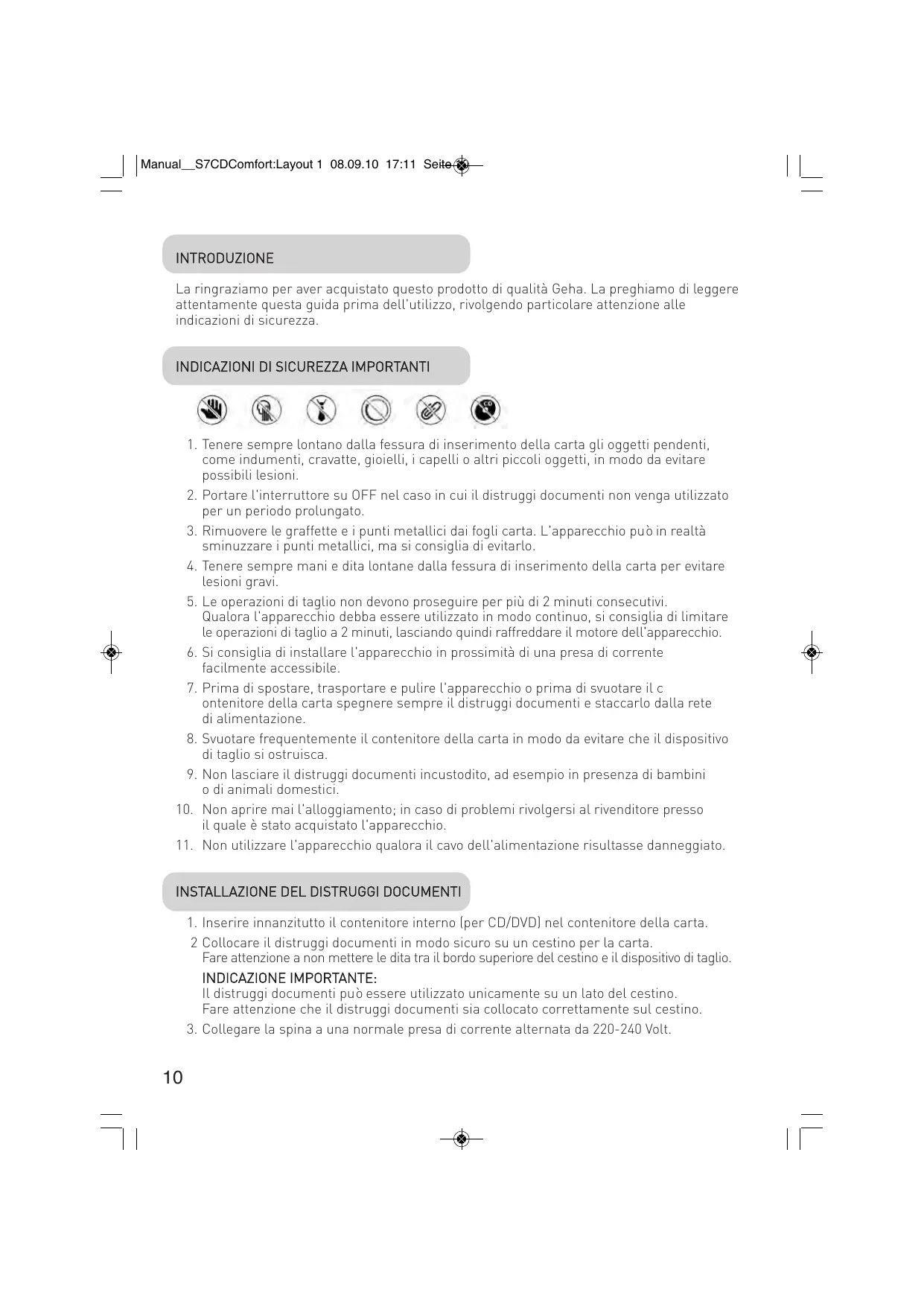 Manual__S7CDComfort:Layout 1 08.09.10 17:11 Seite 10 INTRODUZIONE La ringraziamo per aver acquistato questo prodotto di qualità Geha. La preghiamo di leggere attentamente questa guida prima dell'utilizzo, rivolgendo particolare attenzione alle indicazioni di sicurezza.