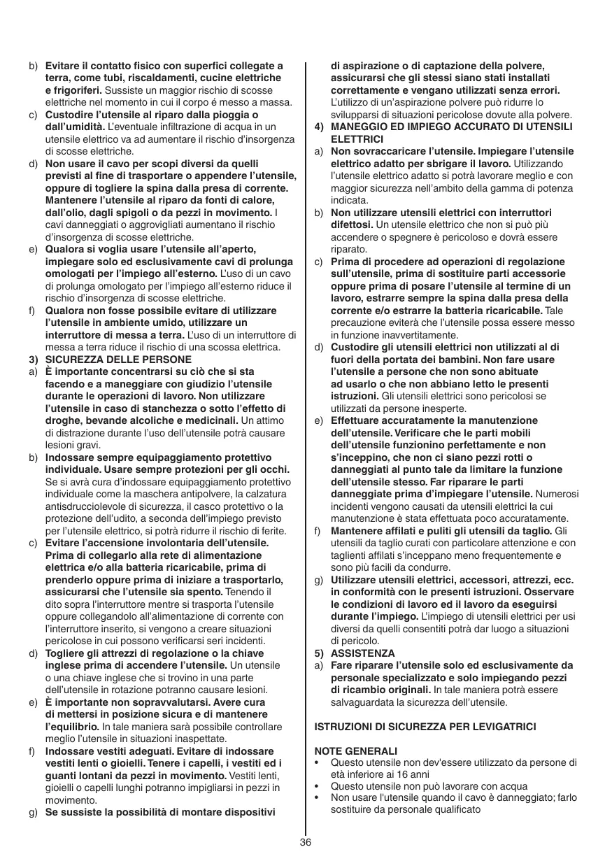 2) SECURITE RELATIVE AU SYSTEME ELECTRIQUE a) La fiche de secteur de l’outil électroportatif doit