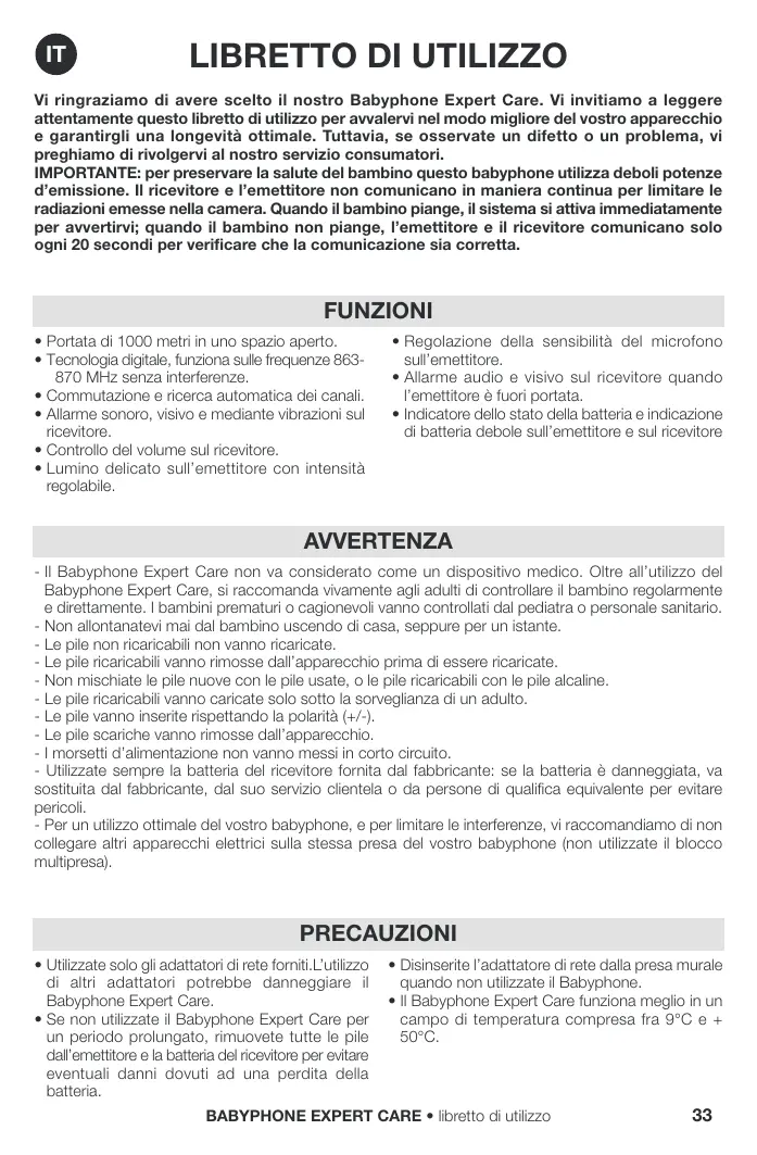 BABYPHONE EXPERT CARE • libretto di utilizzo