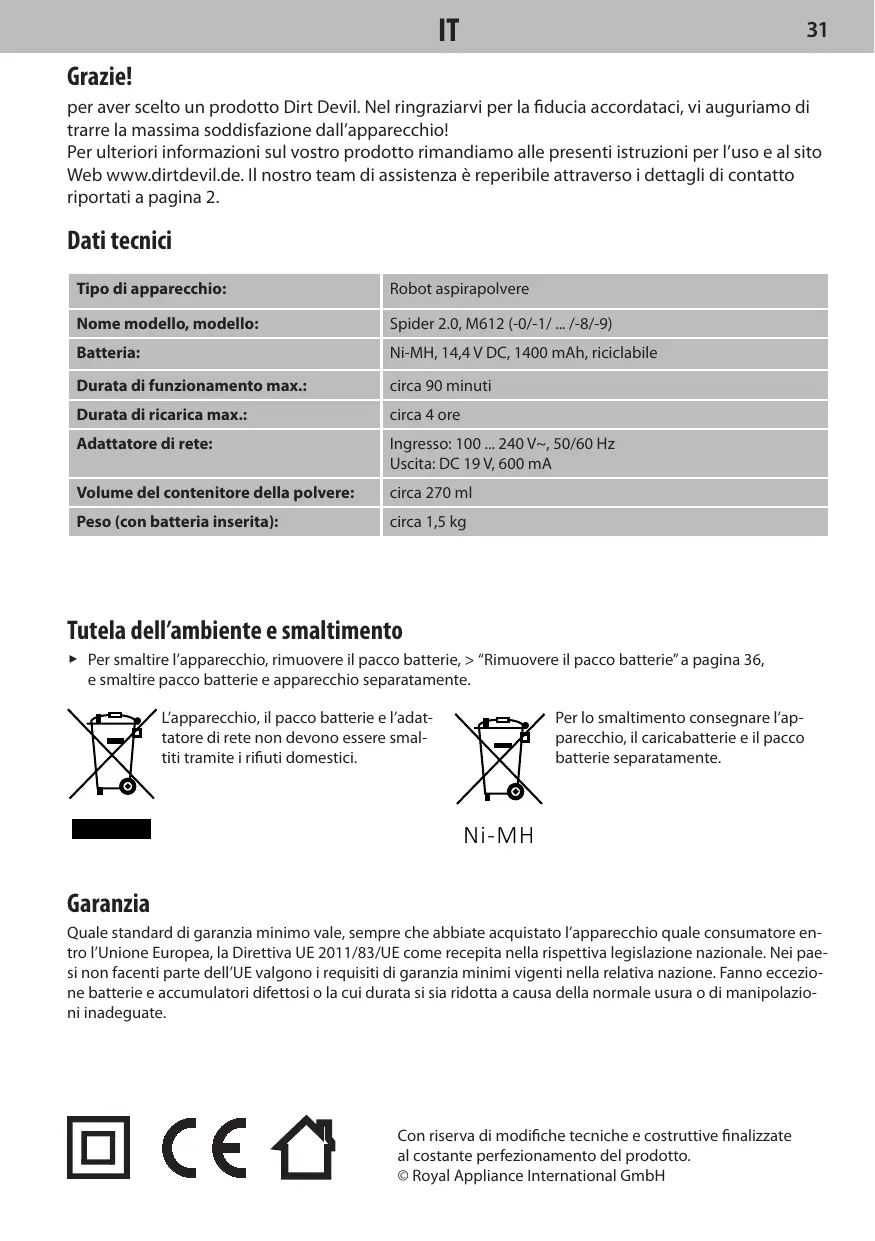 SPIDER 2,0 TRACKER M613 - Aspirapolvere DIRT DEVIL - Manuale utente e istruzioni gratuiti