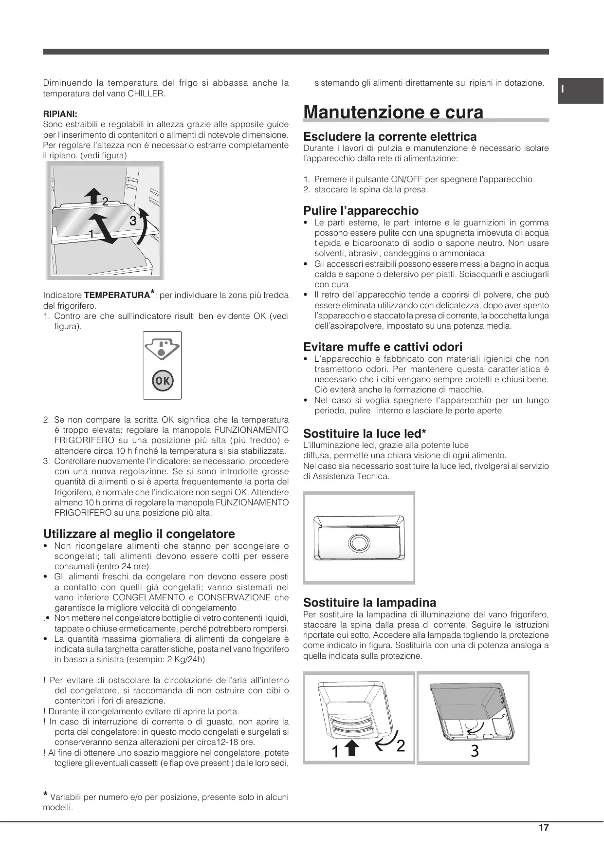 Indicatore TEMPERATURA*: per individuare la zona più fredda del frigorifero. 1. Controllare che sull’indicatore risulti ben evidente OK (vedi figura).