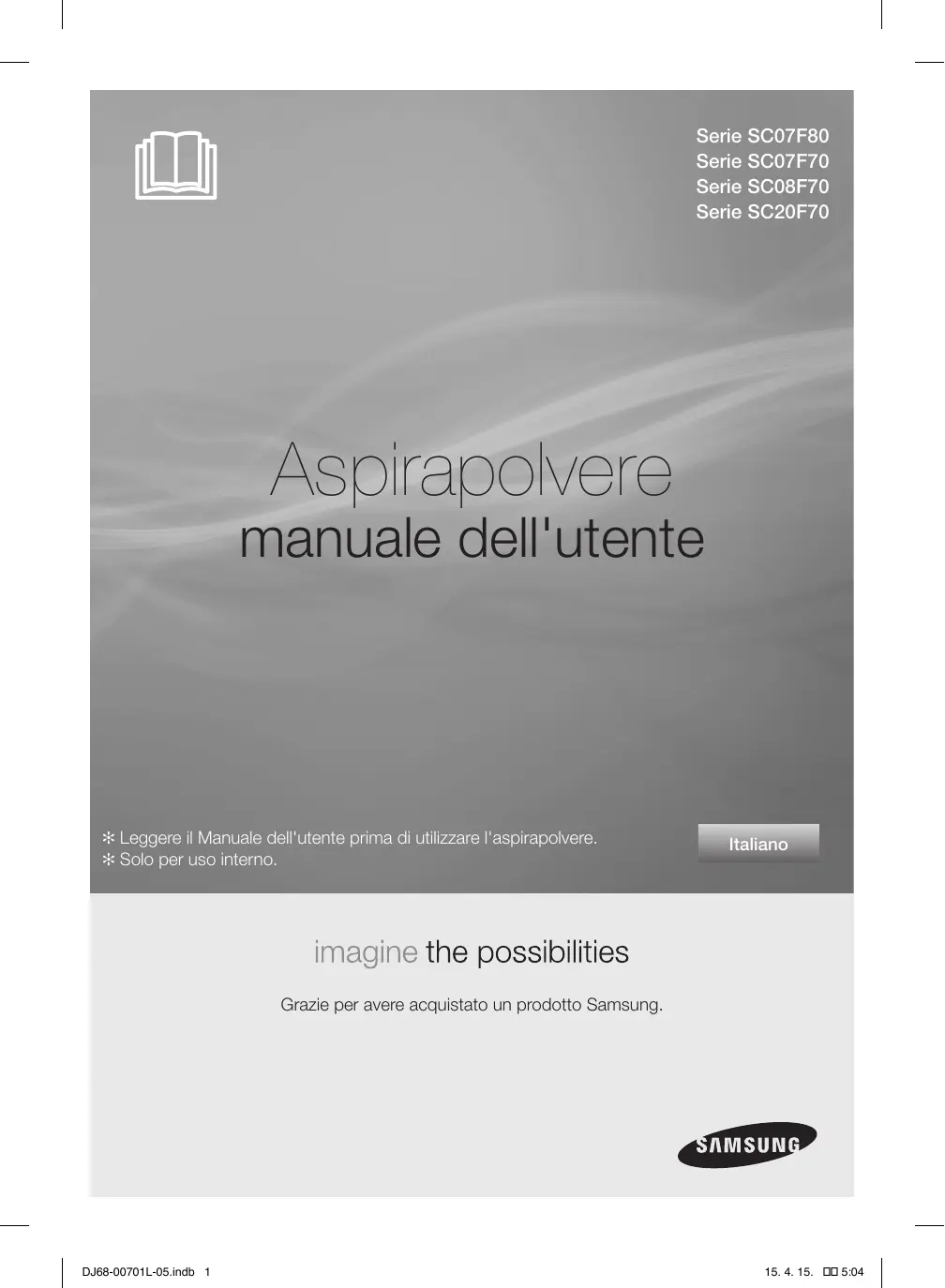 Scarica le istruzioni per il tuo Aspirapolvere in formato PDF gratuitamente! Trova il tuo manuale VC07F70HNUR/EF - VC07F70HUYC/EF - SAMSUNG e riprendi in mano il tuo dispositivo elettronico. In questa pagina sono pubblicati tutti i documenti necessari per l'utilizzo del tuo dispositivo. VC07F70HNUR/EF - VC07F70HUYC/EF del marchio SAMSUNG.
