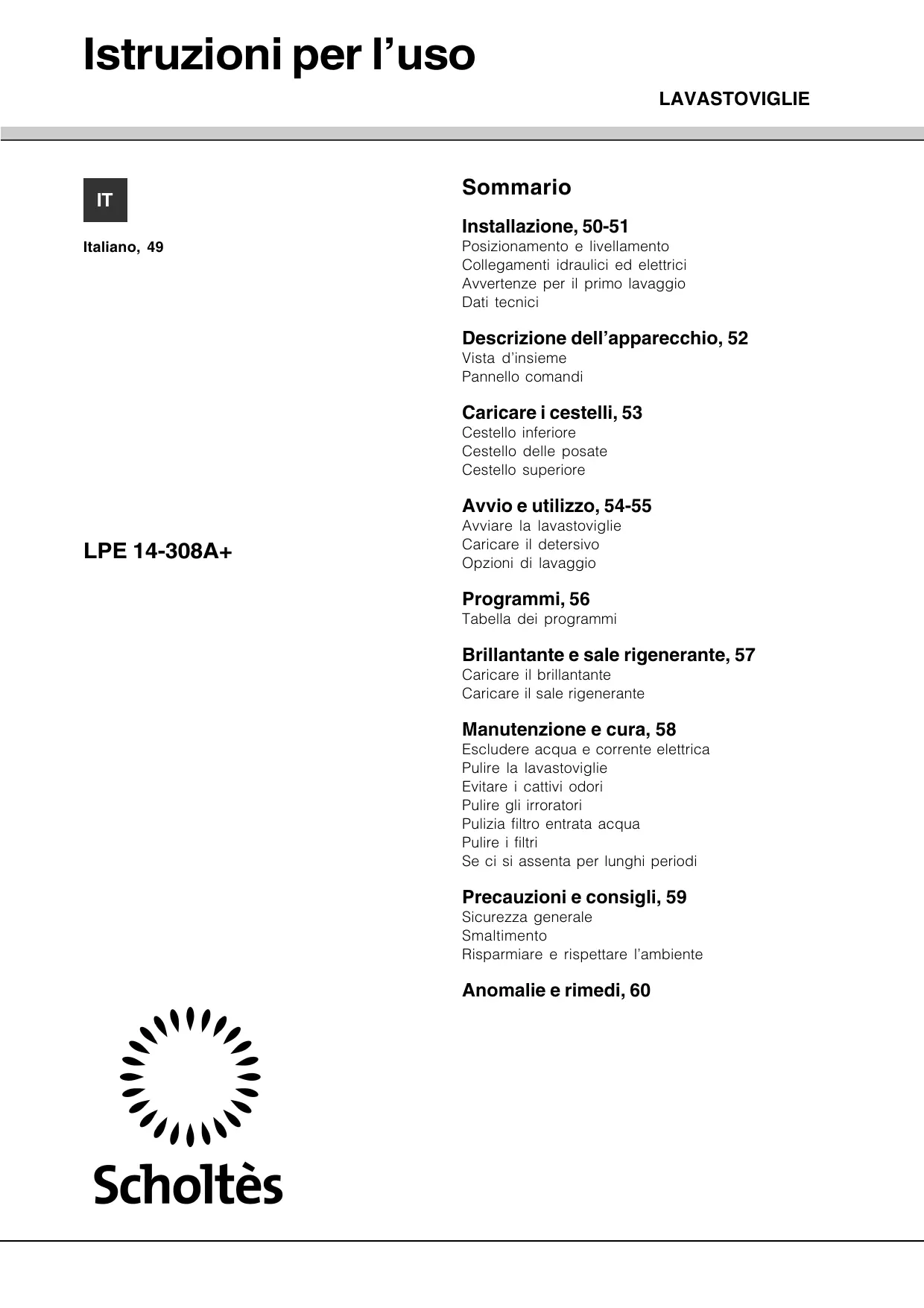 LPE 14-308 A+ IX - SCHOLTES - Manuale utente e istruzioni gratuiti