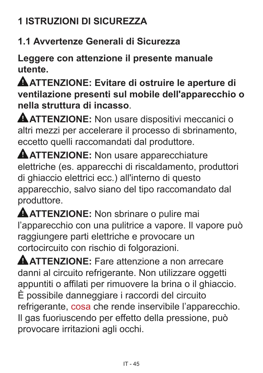 MISE EN GARDE: Ne pas utiliser de dispositifs mécaniques ou autres moyens pour accélérer le processus de dégivrage autres que ceux recommandés par le fabricant. MISE EN GARDE: Ne pas utiliser d'appareils électriques à l'intérieur du compartiment de stockage des denrées, à moins qu'ils ne soient du type recommandé par le fabricant. MISE EN GARDE: Ne pas endommager le circuit de réfrigération. AVERTISSEMENT: Lors du positionnement de l’appareil, s’assurer que le cordon d’alimentation n’est pas coincé ni endommagé. AVERTISSEMENT: Ne pas placer de socles mobiles de prises multiples ni de blocs d’alimentation portables à l’arrière de l’appareil. MISE EN GARDE: Pour éviter tout risque dû à l'instabilité de l'appareil, celui-ci doit être fixé conformément aux instructions suivantes : FR - 3