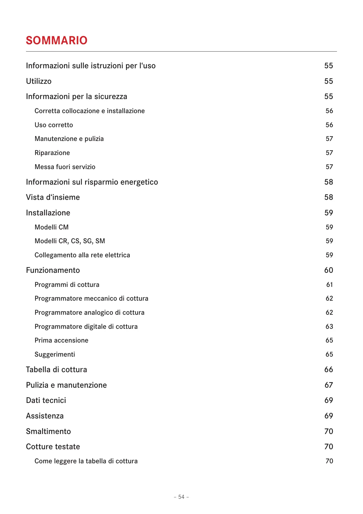 Le tableau suggère la fonction idéale à utiliser pour un aliment donné, à cuire sur un ou plusieurs niveaux en même temps. La durée de la cuisson démarre lors de l‘introduction de l‘aliment dans le four, exclusion faite du préchauffage (si demandé). Les températures et les temps de cuisson sont indicatifs et dépendent de la qualité de l‘aliment et du type