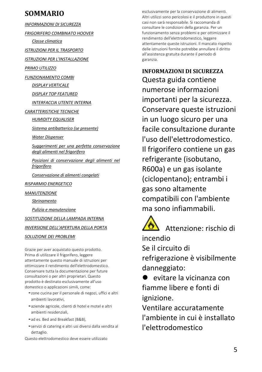 UNITÉ D'AFFICHAGE VERTICALE UNITÉ D'AFFICHAGE VERTICALE AVANCÉE INTERFACE UTILISATEUR INTERNE CARACTÉRISTIQUES TECHNIQUES HUMIDITY EQUALISER SYSTÈME ANTIBACTERIEN (si présent) DISTRIBUTEUR D'EAU Astuces pour maintenir les aliments en parfait état dans le réfrigérateur Stockage des aliments surgelés ÉCONOMIE D’ÉNERGIE ENTRETIEN Dégivrage Nettoyage et entretien CHANGER LA LUMIÈRE INTERNE INVERSER LE SENS D'OUVERTURE DE LA PORTE DÉPANNAGE Merci d'avoir acheté ce produit. Avant d'utiliser votre réfrigérateur, veuillez lire attentivement ce mode d'emploi afin d'optimiser sa performance. Conserver l'ensemble de la documentation pour un usage ultérieur ou pour d'autres propriétaires. Ce produit est conçu uniquement pour une utilisation ménagère ou des applications similaires comme : - coins-cuisine du personnel dans des magasins, bureaux et autres environnements de travail ;