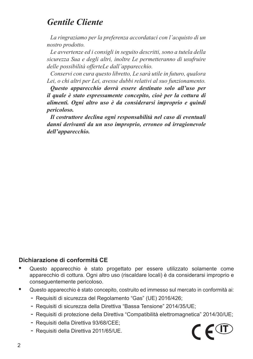 - Questo appearecchio è stato progettato e costruito in conformità con le normative applicabili per gli appearecchi da cottura domestici e rispetta tutti i requisiti di sicurezza previsti, comprese le temperature superficiali.
