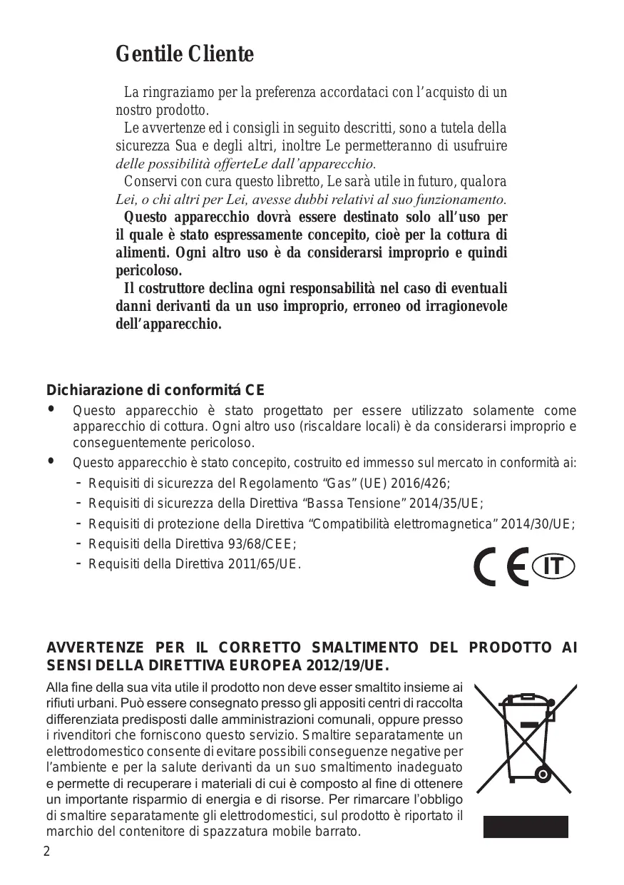 DELONGHI PEMB664C - AVVERTENZE PER IL CORRETTO SMALTIMENTO DEL PRODOTTO AI SENSI DELL'A DIRITTIVA EUROPEA 2012/19/UE. - 2