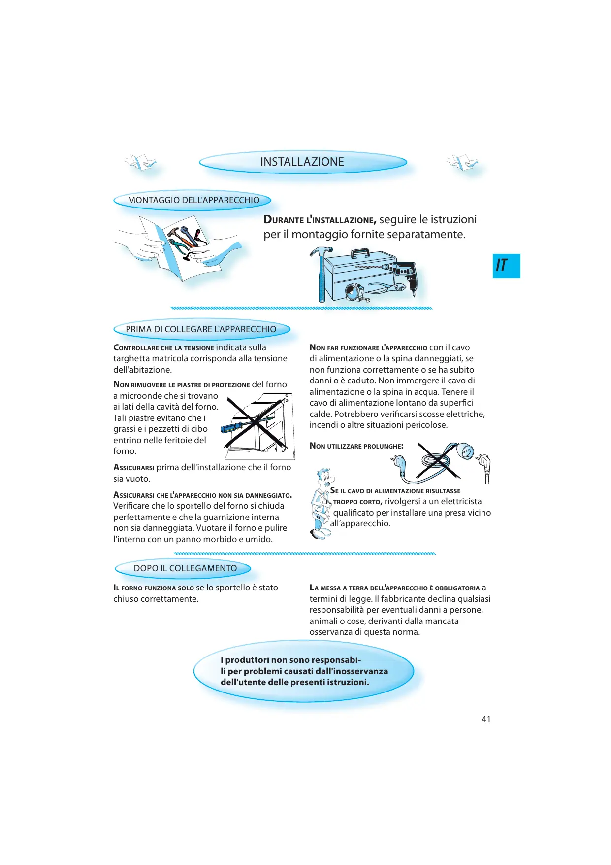 LA CONEXIÓN A TIERRA DEL APARATO es una obligación legal. El fabricante declina toda responsabilidad por lesiones a personas o animales, o daños a la propiedad, que sean consecuencia del incumplimiento de este requisito.