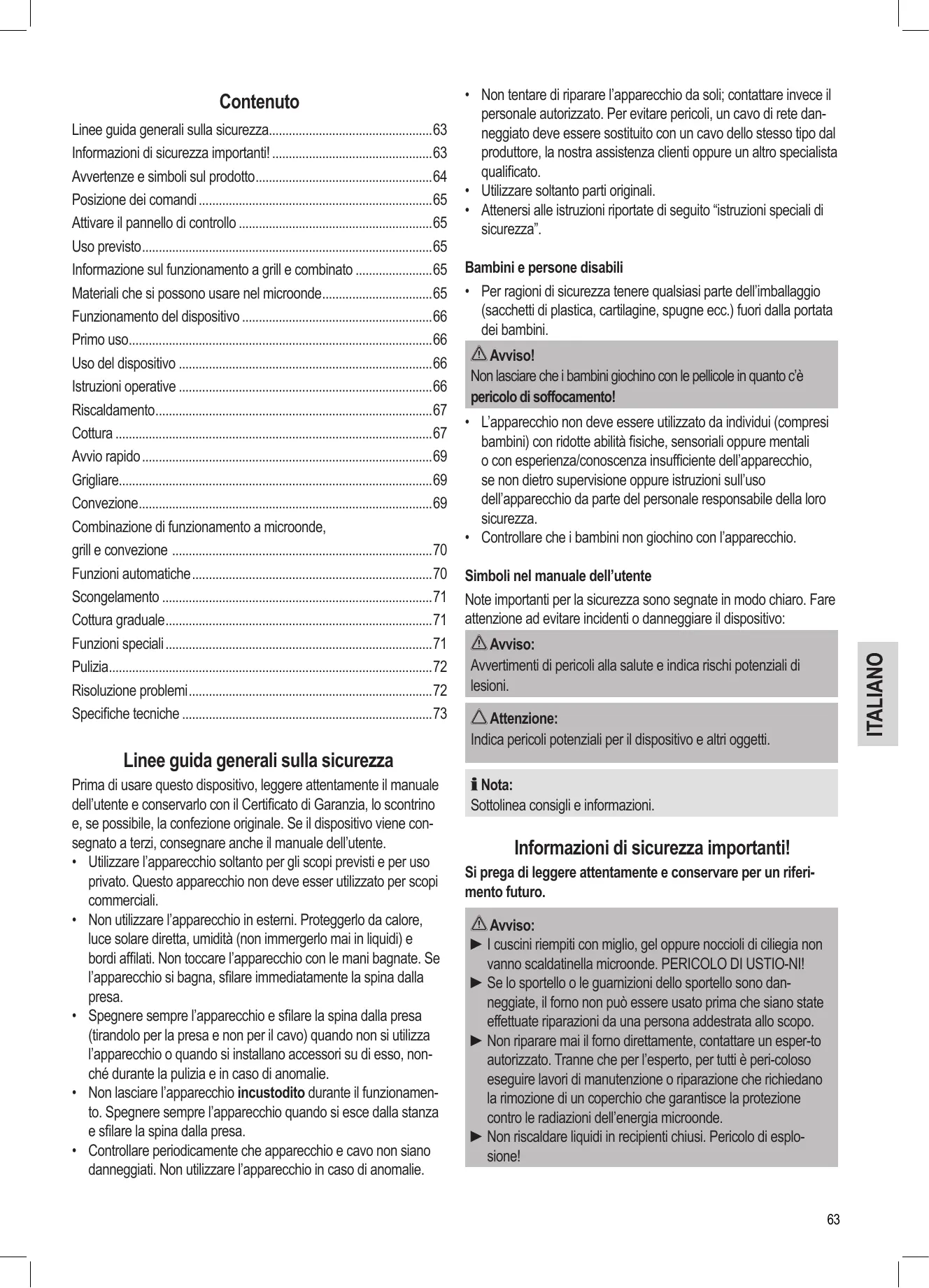 - Combinazione di funzionamento a microonde, grill e convezione p. 70