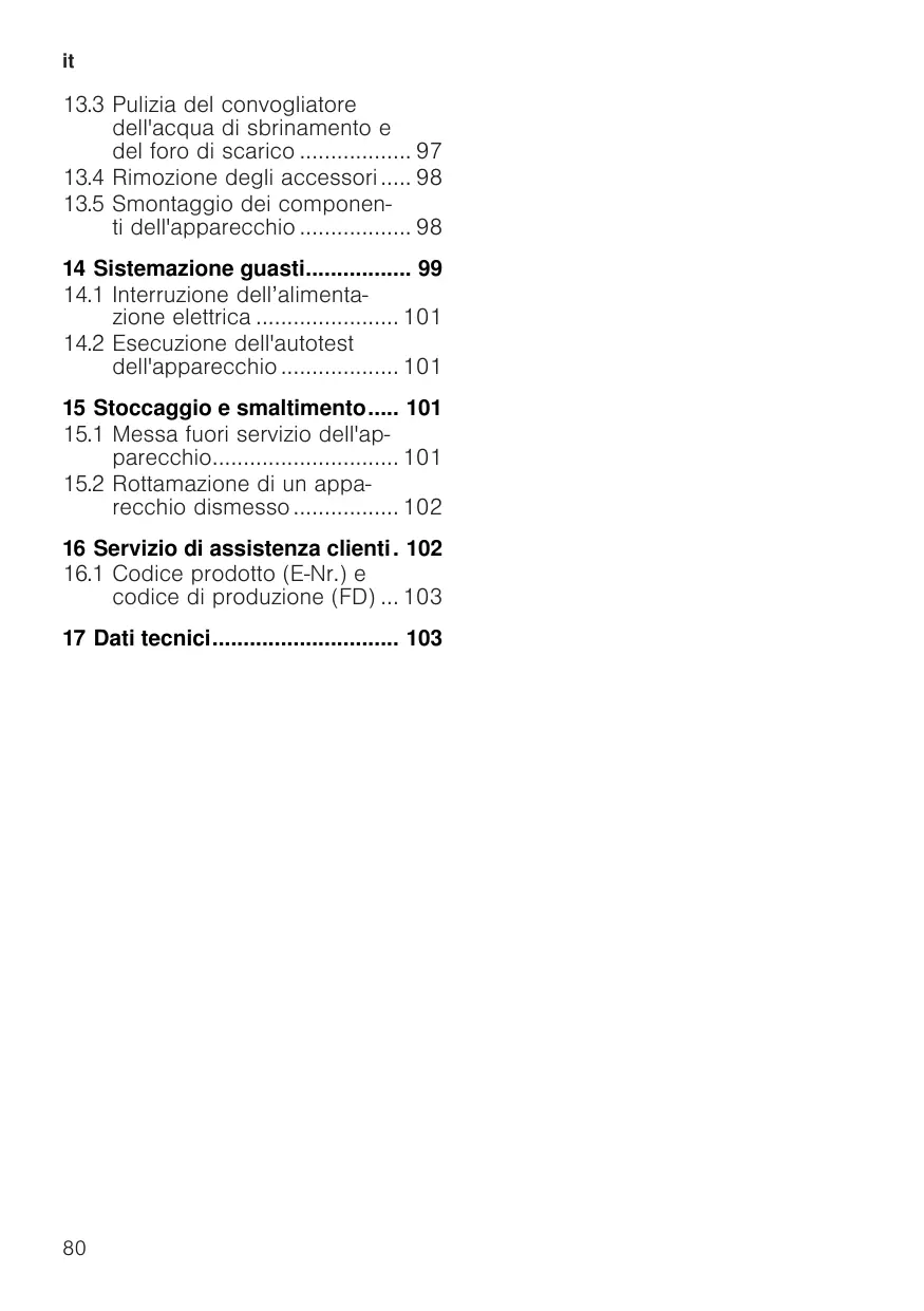 13.1 Preparazione dell'apparecchio per la pulizia 96