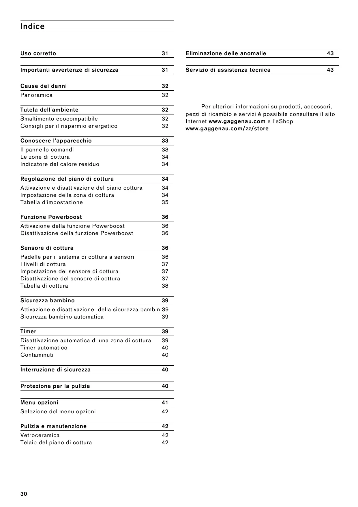Per ulteriori informazioni su prodotti, accessori, pezzi di ricambio e servizi è possibile consultare il sito Internet www.gaggenau.com e l'eShop