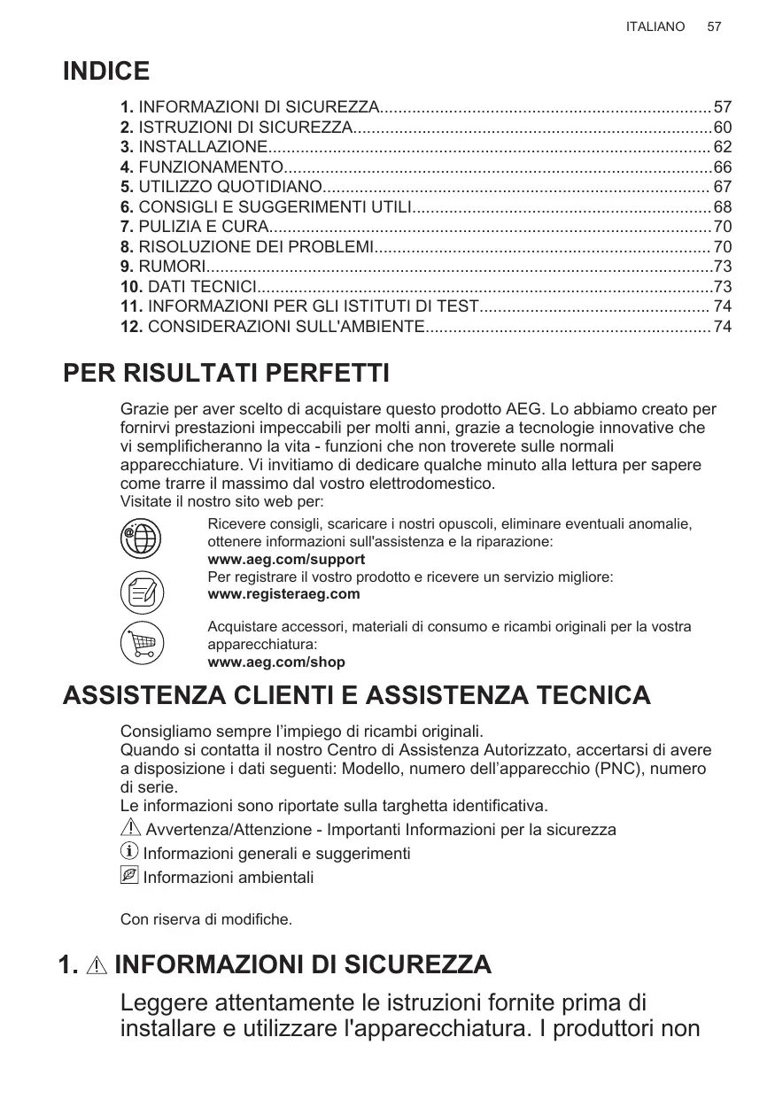 Avant de contacter notre centre de service agréé, assurez-vous de disposer des informations suivantes : Modèle, PNC, numéro de série. Ces informations figurent sur la plaque signalétique. Avertissement/Consignes de sécurité Informations générales et conseils Informations environnementales Sous réserve de modifications.