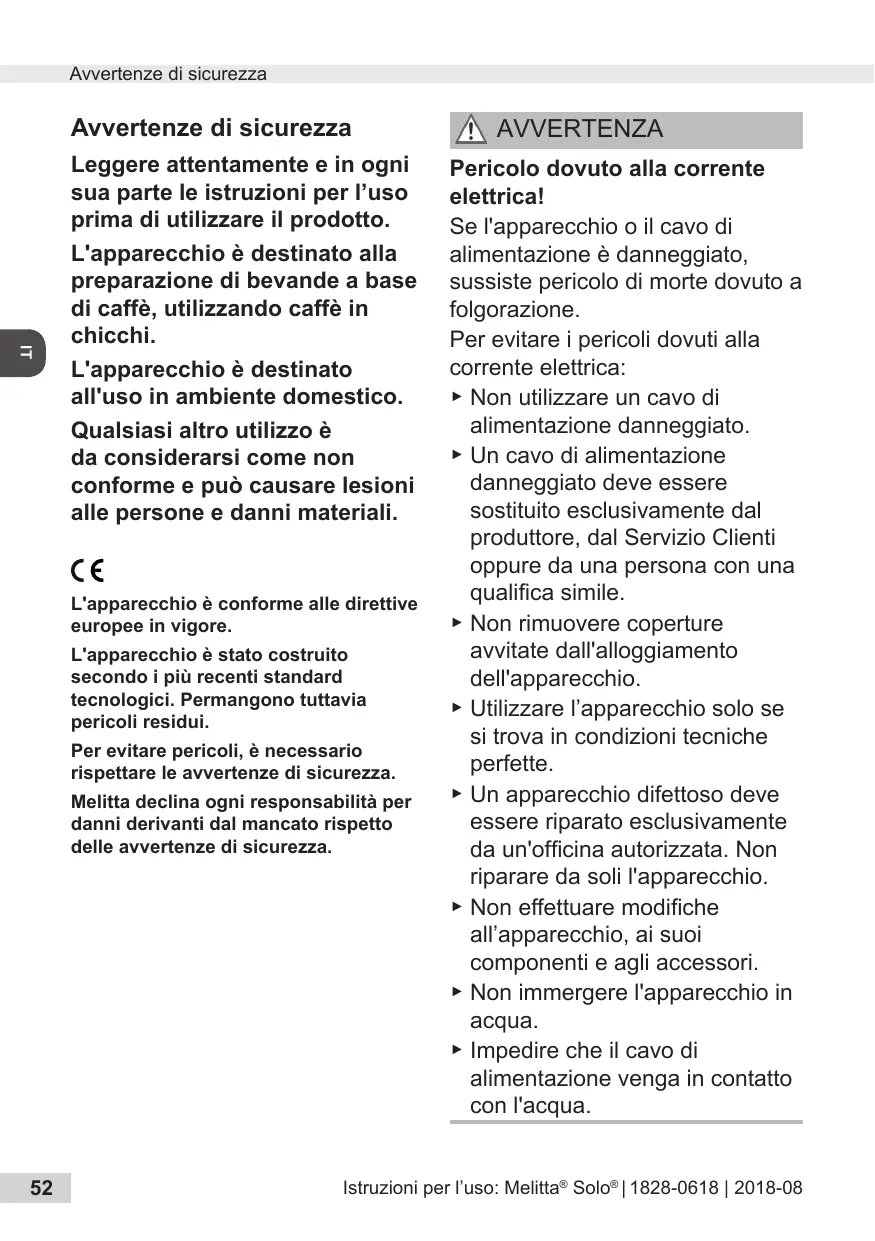 Manual de instrucciones: Melitta® Solo® | 1828-0618 | 2018-08