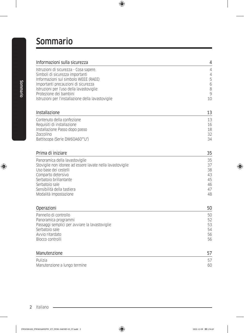 MANUALE UTENTE DW60A6090BB - DW60A6082BB/ET - DW60A6090BB/EF - DW60A6090FS/EF - DW60A6092FW/EF SAMSUNG
