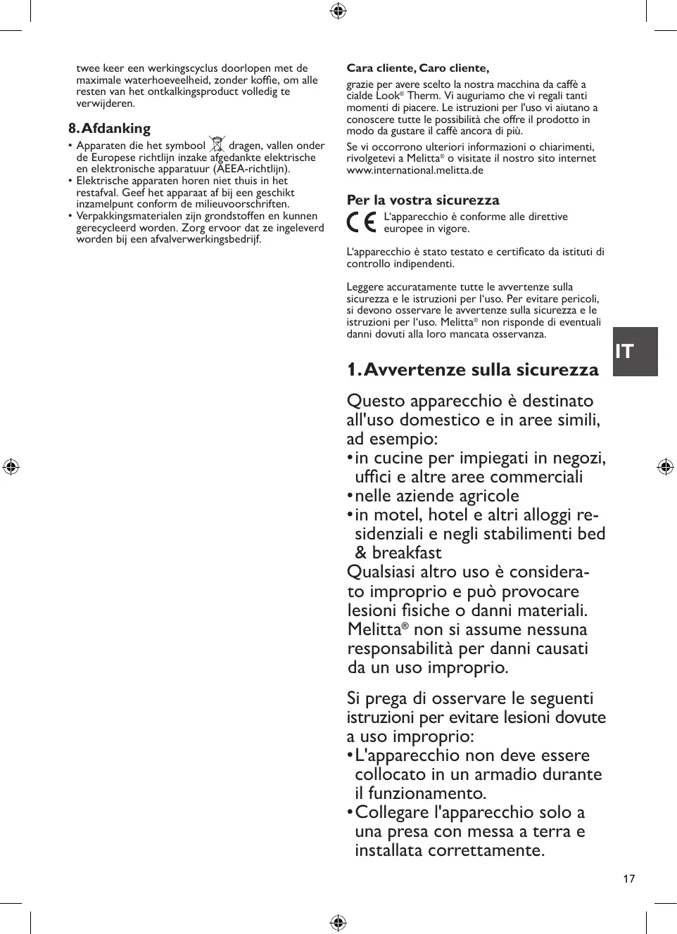 L‘appareil est conforme aux normes européennes en vigueur. L‘appareil a été contrôlé et certifié par des instituts de tests indépendants. Veuillez lire les consignes de sécurité et le mode d‘emploi dans leur intégralité. Afin d‘éviter tout danger, respectez les consignes de sécurité ainsi que le mode d‘emploi. Melitta® décline toute responsabilité en cas de dommages résultant d‘un non-respect des consignes.
