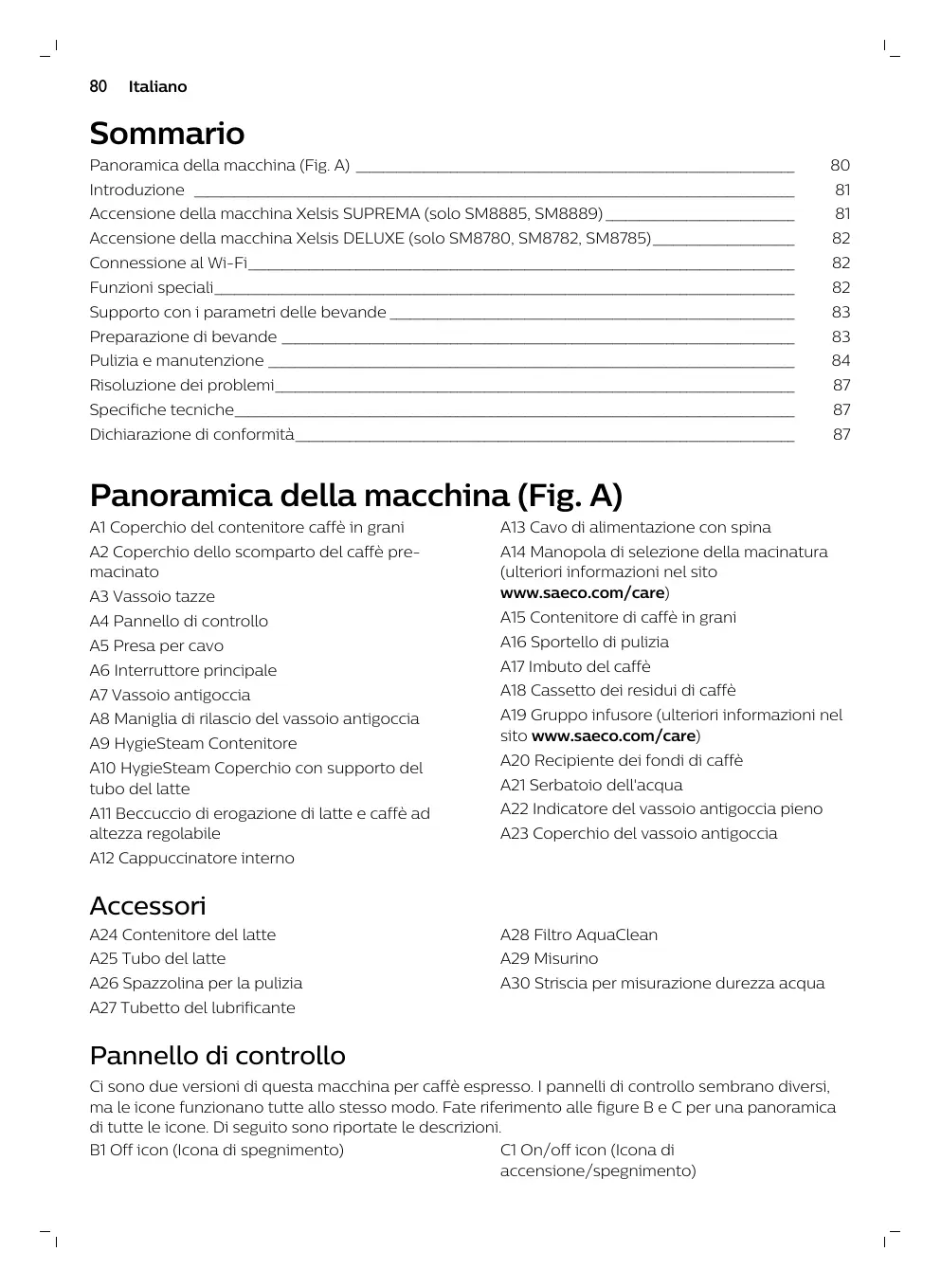XELSIS SM8889 - Macchina da caffè automatica SAECO - Manuale utente e istruzioni gratuiti