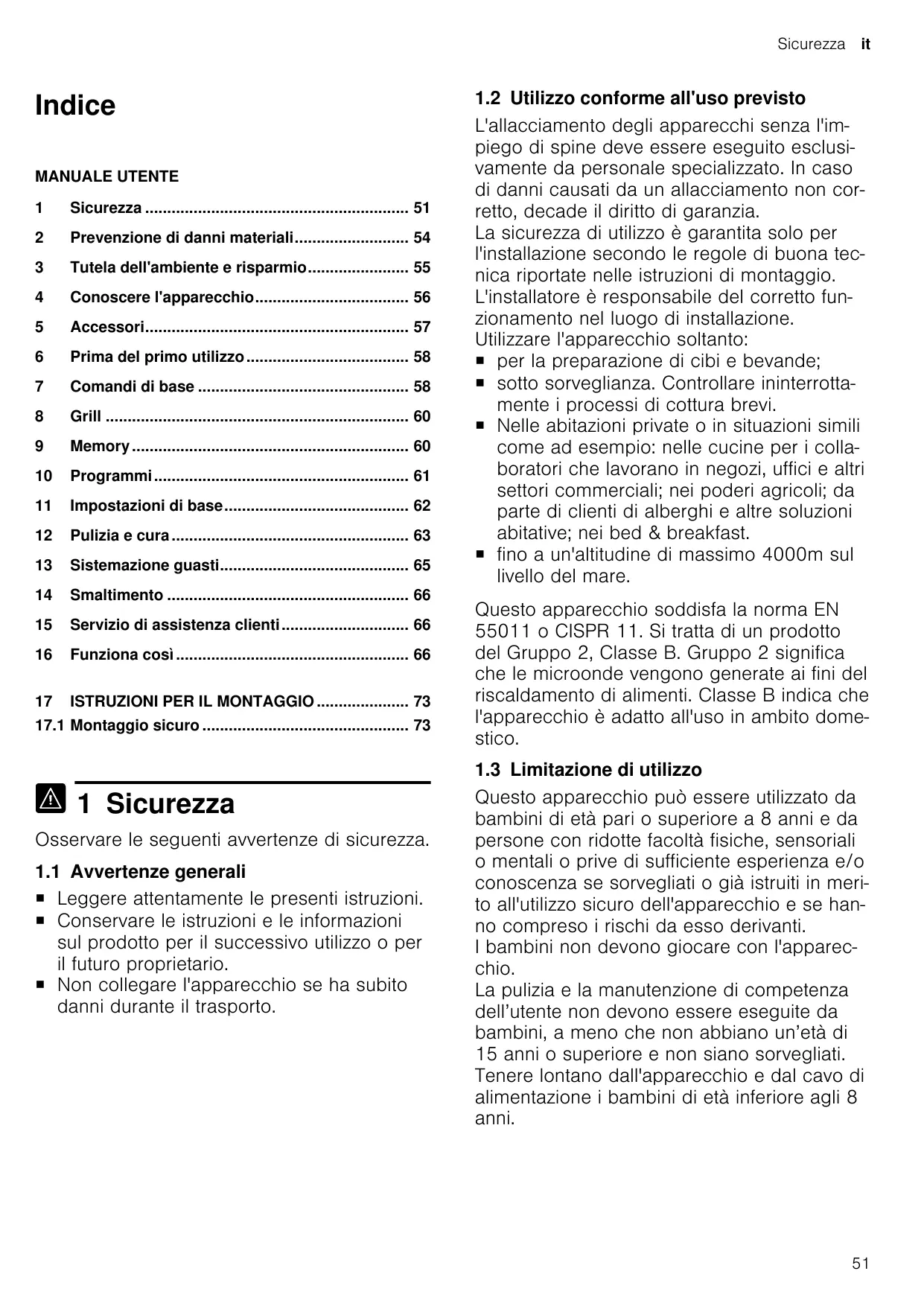 L'allacciamento degli apparecchi senza l'impiego di spine deve essere eseguito esclusivamente da personale specializzato. In caso di danni causati da un allacciamento non corretto, decade il diritto di garanzia. La sicurezza di utilizzo è garantita solo per l'installazione secondo le regole di buona tecnica riportate nelle istruzioni di montaggio. L'installatore è responsabile del corretto funzionamento nel luogo di installazione. Utilizzare l'apparecchio soltanto: ¡ per la preparazione di cibi e bevande; ¡ sotto sorveglianza. Controllare ininterrottamente i processi di cottura brevi. ¡ Nelle abitazioni private o in situazioni simili come ad esempio: nelle cucine per i collaboratori che lavorano in negozi, uffici e altri settori commerciali; nei poderi agricoli; da parte di clienti di alberghi e altre soluzioni abitative; nei bed & breakfast. ¡ fino a un'altitudine di massimo 4000m sul livello del mare. Questo apparecchio soddisfa la norma EN 55011 o CISPR 11. Si tratta di un prodotto del Gruppo 2, Classe B. Gruppo 2 significa che le microonde vengono generate ai fini del riscaldamento di alimenti. Classe B indica che l'apparecchio è adatto all'uso in ambito domestico.