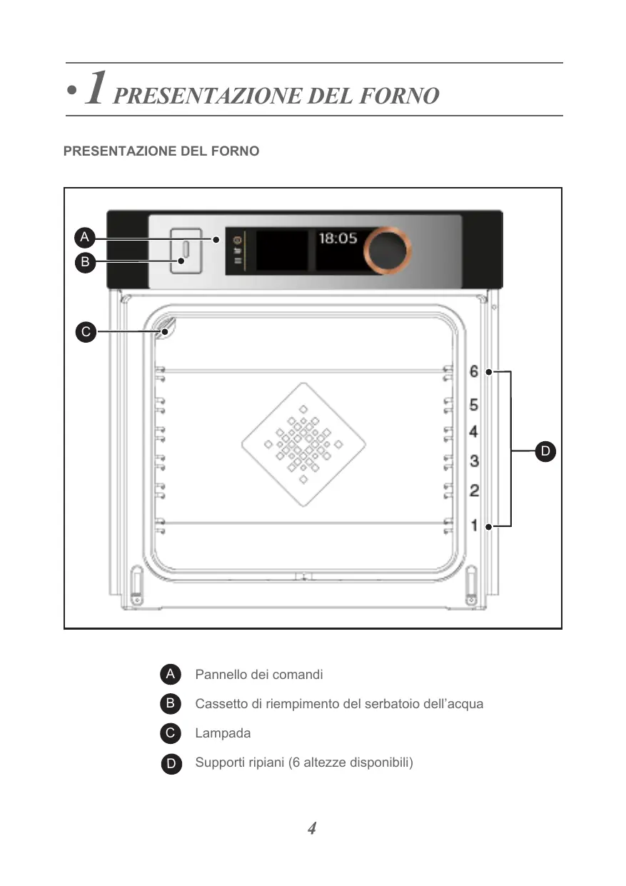 - Piastra in acciaio inossidabile perforata che permette l’evacuazione dell’acqua di condensa dal cibo da inserire al livello 4.